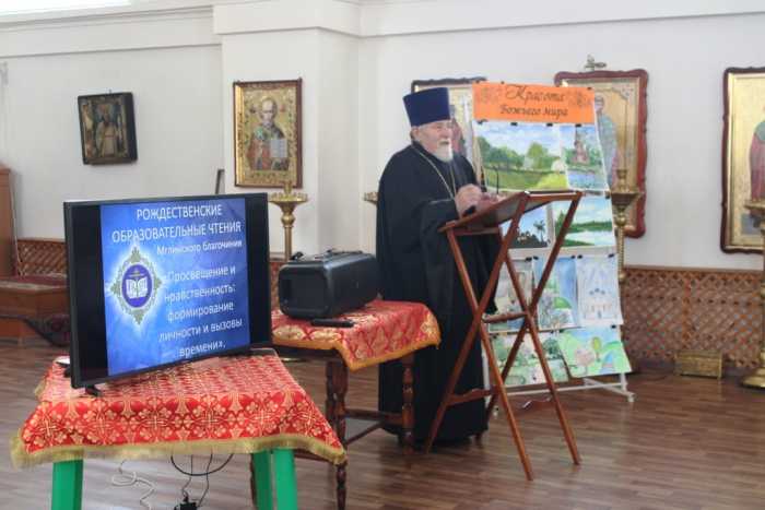19 ноября в храме во имя святой великомученицы Варвары г. Мглина прошел благочиннический этап Рождественских образовательных чтений, тема которых: «Просвещение и нравственность: формирование личности и вызовы времени». Церковно-общественный форум проходит в Мглинском благочинии в восьмой раз под председательством благочинного Мглинского церковного округа протоиерея Василия Климчука. В его работе приняли участие преподаватели, учащиеся и студенты образовательных учреждений города.