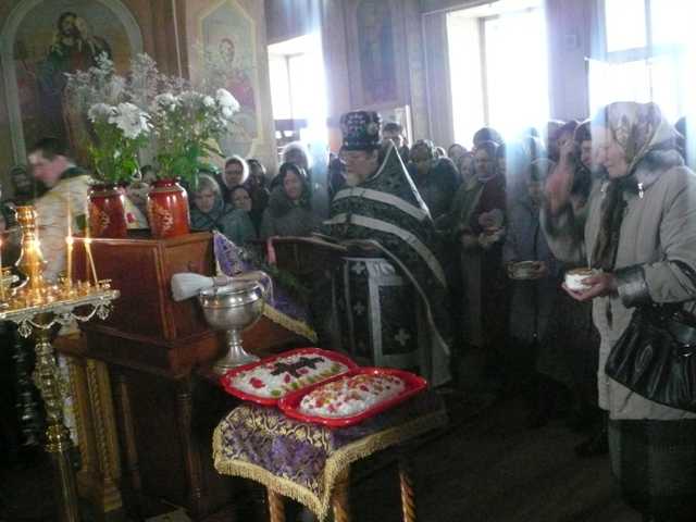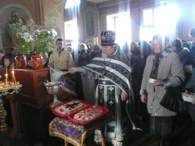Однако Господь не попустил этому замыслу свершиться. Местному епископу Он послал великого страстотерпца Своего Феодора, из воинского сословия, по прозванию Тирон. И тот, представ перед ним не во сне, а наяву, сказал вот что: «Как можно скорее, встав, собери стадо Христово и строго заповедай никому ничего не покупать из предлагаемого на торжище, ибо все это осквернено идоложертвенной кровью по приказу нечестивого царя». Архиерей недоумевал и спрашивал: «Но как бы это удалось не имеющим дома достаточно пищи — не покупать предлагаемого на торжище?» — «Дав им коливо, — ответил святой, — восполни недостаток». Так великомученик Феодор Тирон, оказал благотворную помощь христианам для сохранения поста. Вспоминая это чудо явленное Господом через своего верного слугу, православные христиане освящают коливо в день памяти великомученика Феодора, который празднуется в пятницу первой недели Великого поста. Освящение колива (иначе кутий) совершено в Храме в честь Успения Пресвятой Богородицы г. Мглина настоятелем храма протоиереем Василием Климчуком в пятницу первой седмицы на Преждеосвященной литургии, по заамвонной молитве и молебном пении великомученику Феодору.