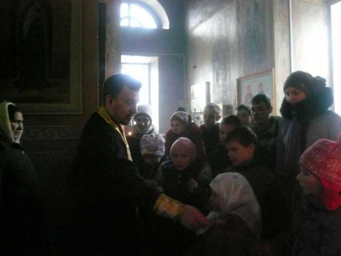Ребят и их наставников встретил в храме священник Пётр Климчук. Отец Пётр поблагодарил ребят за их стремление приобщиться к святыне и со словами отеческого наставления вручил ребятам иконки Олега Брянского и «Прибавление ума».