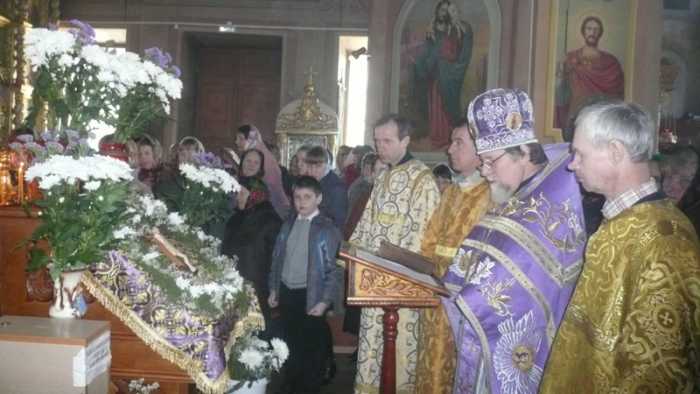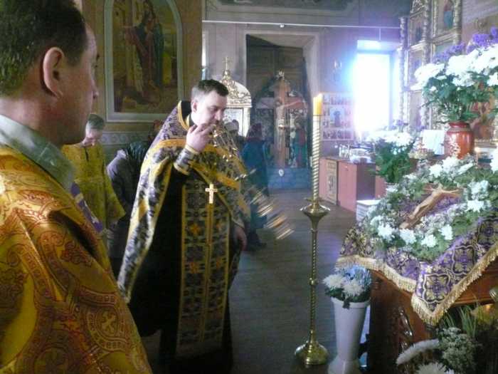 С отеческим словом к прихожанам обратился протоиерей Василий Климчук: «Не напрасно мы почитаем Крест Господень, изображаем его на себе и поклоняемся ему, ибо он есть Божественная сила, сохраняющая и спасающая нас при жизни и по смерти. Церковь непрестанно проповедует о силе и животворности его, проявлявшихся и в прежние века, и ныне совершающихся над верующими: он исцелял всякие болезни, воскрешал мертвых, прогонял от людей полки демонов, погашал страсти в сердцах людей, доставлял чудесные победы на войнах с неверными. Православная церковь учит: каждый православный христианин должен и обязан каждое утро и вечер осенять себя крестным знамением. Но нужно помнить и о том, что неправильное, небрежное, наложенное без благоговения крестное знамя не призывает милость Божию, а наоборот, подвергает осуждению Божию, т.к. это действие есть кощунство, пренебрежение святыней».