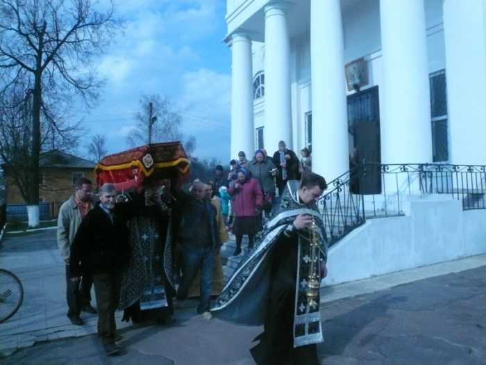 В Великую пятницу Страстной седмицы вынос и погребение Плащаницы в храме в честь Успения Пресвятой Богородицы г. Мглина совершили настоятель храма протоиерей Василий Климчук и второй священник Пётр Климчук. Плащаница была вынесена из алтаря и установлена в центре храма — во «гробе» — на возвышении, украшенном цветами и умащенном благовониями в знак скорби о смерти Христа.