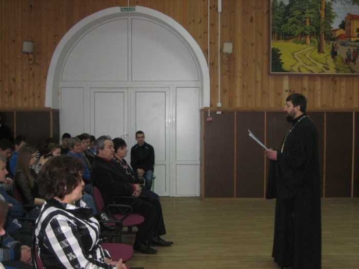 Накануне праздника Сретения Господня состоялась встреча протоиерея Владимира Фараона со студентами Суражского педагогического колледжа им. А.С.Пушкина. Отец Владимир поздравил будущих педагогов с Днём православной молодёжи и огласил обращение патриарха Московского и всея Руси Кирилла. Общаясь со студентами, основной акцент батюшка делал на то, чтобы будущие православные педагоги помогли своим воспитанникам не только изучить науки, но и овладеть духовными сокровищами православия, научили их выстраивать свою жизнь в свете веры православной.