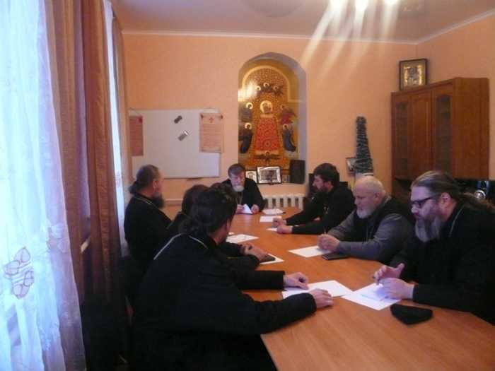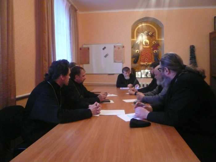 Под председательством благочинного Мглинского округа протоиерея Василия Климчука состоялось собрание духовенства Мглинского благочиния. В работе собрания приняли участие: протоиерей Владимир Фараон, священник Владимир Гуляев, священник Сергий Локтев, священник Владимир Мельников, священник Константин Барейшис и священник Константин Бысов.