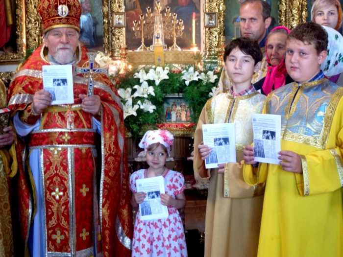 17 июля, в день, когда Православная Церковь чтит память святых Царственных страстотерпцев, в храме Успения Пресвятой Богородицы г. Мглина была отслужена Божественная литургия. Богослужение, за которым молитвенно почиталась память Царственной Семьи императора Николая II, пострадавшей от рук безбожной власти, совершил благочинный Мглинского церковного округа, настоятель храма протоиерей Василий Климчук. Завершилось богослужение молебным пением к святым Царственным страстотерпцам с чтением коленопреклоненных молитв и словом проповеди отца настоятеля к прихожанам, в котором он рассказал о жизненном подвиге и духовном смысле мученического пути Царской Семьи, разделившей горькую участь многих других верных сынов и дщерей Русской Православной Церкви. Каждому участнику богослужения был преподнесен миссионерский буклет, посвященный святым Царственным страстотерпцам.
