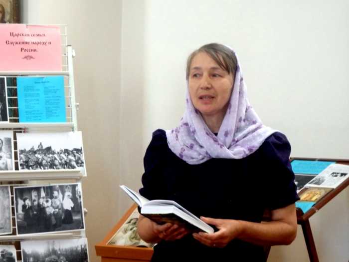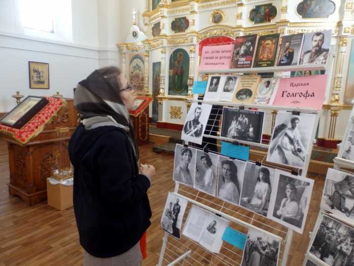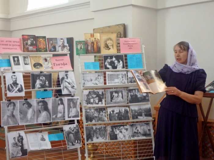 По завершении богослужения все прихожане были приглашены в храм святой великомученицы Варвары, где их вниманию была представлена книжно-иллюстративная выставка о венценосной семье Царственных страстотерпцев. Преподаватель воскресной школы Вера Алексеевна Ячменева провела обзорное мероприятие в дань памяти семье последнего российского императора, невинно убиенной в ночь с 16 на 17 июля 1918 года. Вера Алексеевна подробно рассказала собравшимся о каждом члене императорской семьи, отличавшейся взаимной любовью и духовным единством: Императоре Николае II, Императрице Александре, цесаревиче Алексии, великих княжнах Ольге, Татиане, Марии, Анастасии. Они не бежали от преследований, не отреклись от христианства, от русской культуры. Они пострадали, сохранив крепость веры православной в своих сердцах и беззаветную любовь к России.