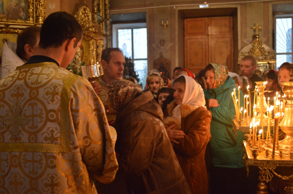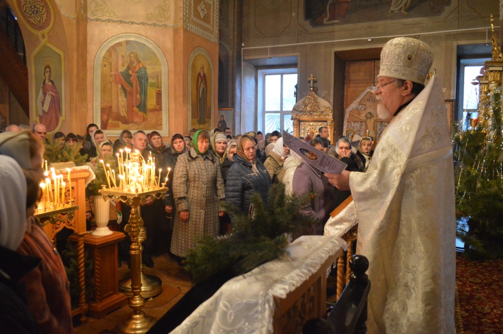 В Рождественский сочельник – навечерие Рождества Христова прихожане храма Успения Пресвятой Богородицы г. Мглина встречали явление в мир во плоти Господа нашего Иисуса Христа участием в вечернем богослужении, которое совершил благочинный Мглинского церковного округа, настоятель храма протоиерей Василий Климчук. Духовной радостью и ликованием исполнились и сердца православных мглинчан в осознании того, что в эту священную и спасительную ночь для всего мира и для человека пришло искупление. Каждый  стремился подойти к рождественскому вертепу, помолиться перед иконой Рождества Христова, выразить свою благодарность Рождшемуся Богомладенцу Христу. За богослужением молились также Глава администрации Мглинского района Александр Пущиенко и сотрудники администрации. Благочинным Мглинского округа протоиереем Василием Климчуком было зачитано послание Святейшего Патриарха Московского и всея Руси Кирилла по случаю празднества Рождества Христова. Завершилось вечернее богослужении елеепомазанием верующих.
