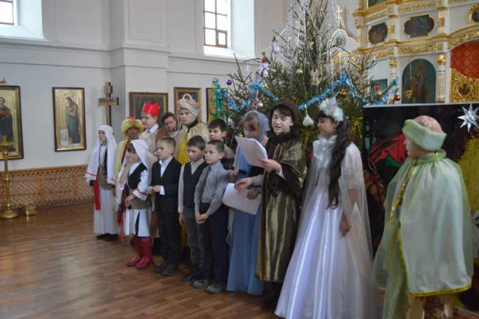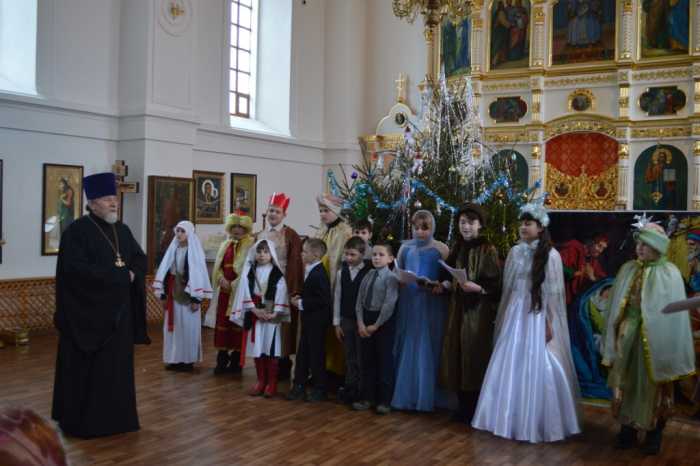 7 января, в светлый праздник Рождества Христова, после Божественной литургиисостоялся детский утренник, посвященный празднованию светлого праздника Рождества Христова. Праздничное мероприятие собрало прихожан и гостей в храме святой великомученицы Варвары г. Мглина. Открыл праздничное представление рождественским приветствием благочинный Мглинского церковного округа протоиерей Василий Климчук. Далее слово было передано воспитанникам воскресной школы, которые начали представление с исполнения Тропаряи КондакаРождеству Христову. В своем трогательном выступлении ребята напомниливсем о событиях Рождественской ночи, звучали песни и стихи, прославляющие рождение Богомладенца Христа. Костюмированное детское представление было исполнено особой торжествующей радости, которая озаряла не только лица юных исполнителей, но и сердца всех присутствующих.