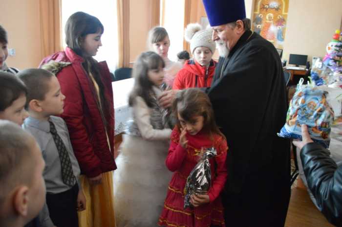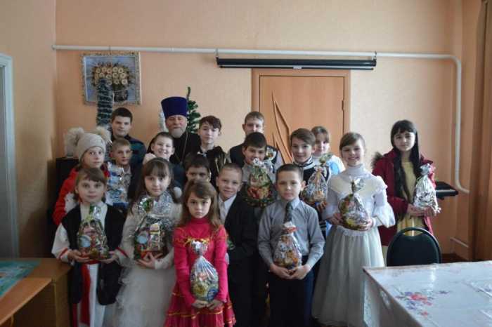 По завершении выступления протоиерей Василий Климчук произнес слова благодарности всем детям, их родителям и преподавателям воскресной школы, кто потрудился в организации и проведении праздничного представления, пожелал сохранить благодатную радость Рождественского торжества на весь предстоящий год. Из рук батюшки со словами поздравлений и благопожеланий в день Рождества Христова воспитанники воскресной школы получили сладкие Рождественские подарки.