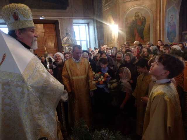 Прихожане, молитвенно разделив с отцом настоятелем  духовную радость дня его святых именин, поспешили принести ему свои поздравления и благопожелания. С  сердечной любовью и уважением его духовные чада -  воспитанники воскресной школы, труженики храма и прихожане  произносили в его адрес многочисленные слова поздравлений, слов нескончаемой благодарности и пожеланий доброго здравия и долгоденствия,   крепости сил  в подражании своему небесному покровителю святителю Василию Великому  в несении трудов на нелегком священническом поприще.   Пение хором «Многая лета!» было подхвачено и прихожанами: единым сердцем и едиными устами провозглашалось многолетие батюшке, дабы  их добрый пастырь, духовный наставник, усердный  молитвенник, преданный Церкви Христовой,  в здравии и долгоденствии пребывал со своими чадами, утешая, ободряя и наставляя в несении жизненного Креста  на пути в Царствие Божие.