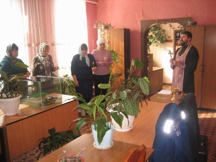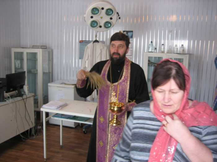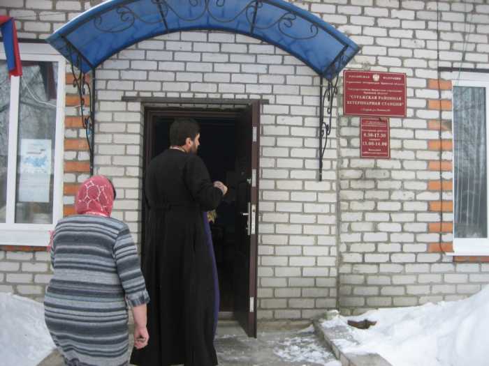 Сотрудники Суражской районной ветеринарной станции во главе с заведующей  Людмилой  Леонидовной Ларченко приняли молитвенное участие в чине освящения здания, который совершил настоятель храма Благовещения Пресвятой Богородицы г. Суража протоиерей Владимир Фараон. По завершении молебна  священнослужитель пообщался с присутствующими на духовные темы и преподал благословение на дальнейшие труды.