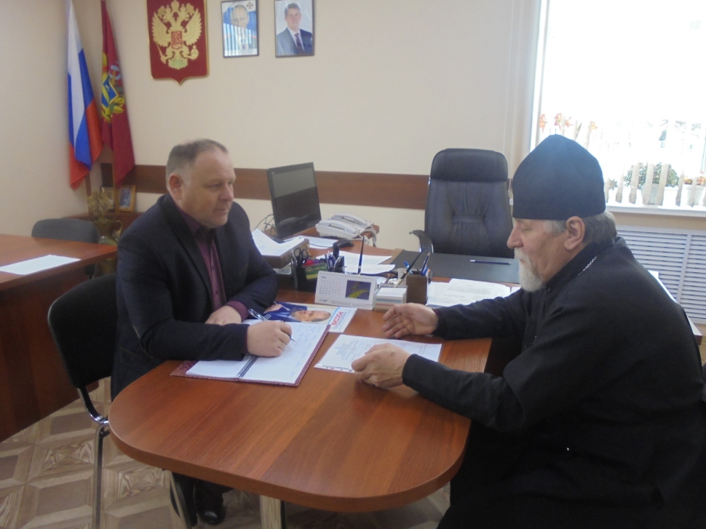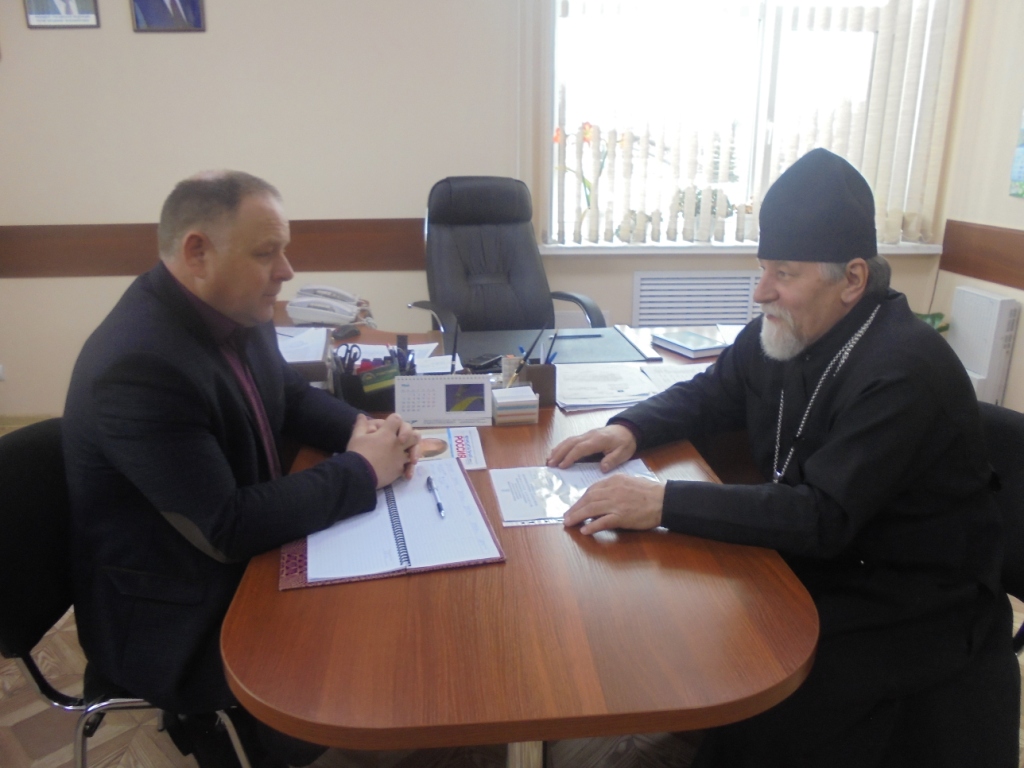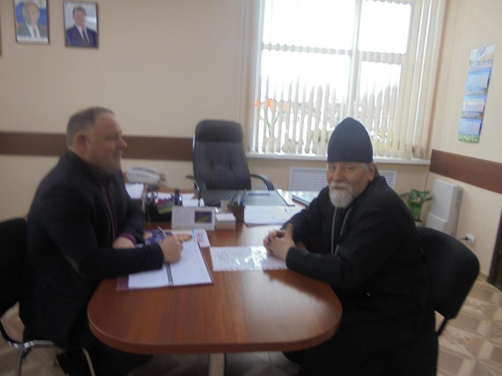 В преддверии светлого праздника Пасхи Христовой состоялась рабочая встреча благочинного Мглинского церковного округа протоиерея Василия Климчука с Главой администрации района Александром Александровичем Пущиенко. В ходе беседы были обсуждены первоочередные вопросы   организации и проведения праздничных пасхальных торжеств. Его Высокопреподобие поздравил Александра Александровича и в его лице всех работников администрации района с грядущим Христовым Воскресением  и пригласил  разделить радость молитвенного общения  с мглинчанами участием в пасхальном богослужении.