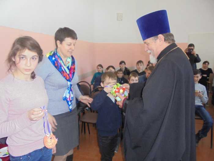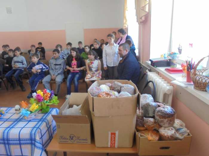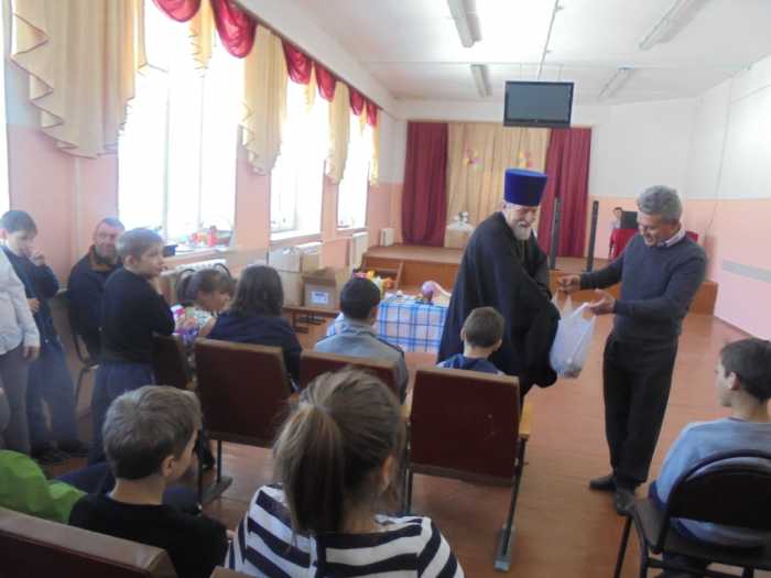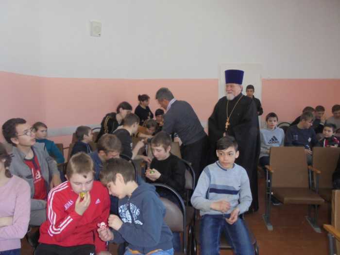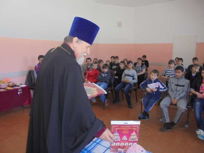 Ежегодная пасхальная традиция посещения благочинным Мглинского церковного округа протоиереем Василием Климчуком воспитанников коррекционной школы-интерната г. Мглина продолжилась и в нынешнем году.  В светлый  праздник Пасхи батюшка разделил с ребятами  радостное событие Воскресения Христова. Отец Василий  рассказал воспитанникам об истории праздника, о традициях подготовки к нему и проведении всего Пасхального периода, ответил на вопросы детей.   Священник поприветствовал всех  радостным возгласом «Христос воскресе!», на который ребята дружно ответили «Воистину воскрсесе!» и преподнес в дар традиционные пасхальные  угощения: куличи и яйца. Воспитанники школы во главе с директором учреждения Михаилом Ивановичем Ходиным также в ответном слове поздравили своего духовного наставника с Пасхой Господней и подарили батюшке пасхальные сувениры, выполненные своими руками.