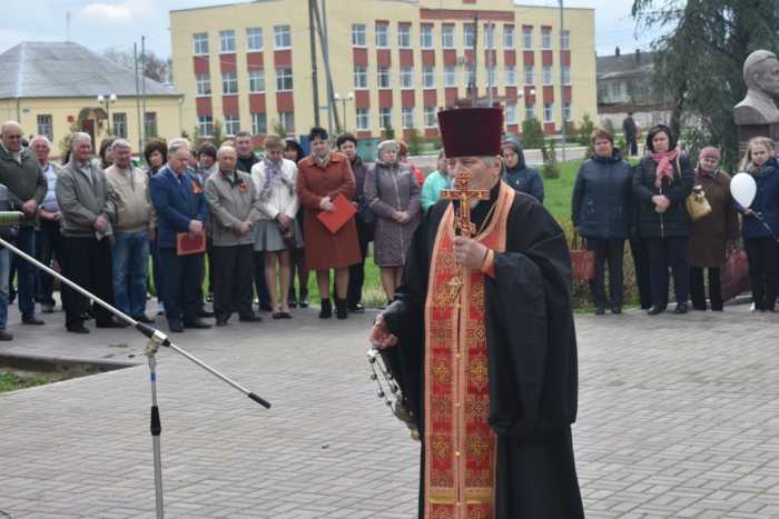 В траурном мероприятии принял участие благочинный Мглинского церковного округа протоиерей Василий Климчук. Его Высокопреподобие отслужил литию по погибшим вследствие ядерной катастрофы и обратился к участникам митинга со словом, в котором призвал свято помнить и молитвенно чтить память об участниках ликвидации аварии, которые через личное мужество, самопожертвование и титанический труд привели к победе в невиданном никогда ранее противоборстве человека с ядерной стихией.