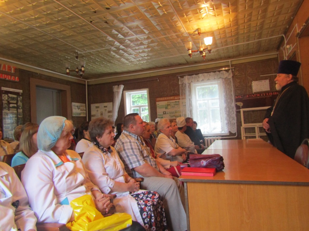 15 июня, в преддверии Дня медицинского работника,  поздравления с грядущим профессиональным  праздником  от благочинного Мглинского церковного округа протоиерея Василия Климчука принимал медицинский персонал  Мглинской ЦРБ.  На торжественном собрании протоиерей Василий  обратился с поздравительным словом к  виновникам торжества, выразил слова признательности работникам сферы здравоохранения за их нелегкий, самоотверженный  труд. Мглинской ЦРБ  в лице главного врача больницы Антонины Петровны Емельяненко священнослужитель подарил икону святителя и исповедника Луки Крымского – небесного покровителя медиков, снискавшего талант врача-хирурга и дар врачевателя душ человеческих, дарованные ему Господом. С благословением на дальнейшие  труды во благо ближних и с пожеланиями  сопутствия помощи Божией в медицинском служении людям, крепости сил, здравия и благоденствия, батюшка подарил медработникам иконки.