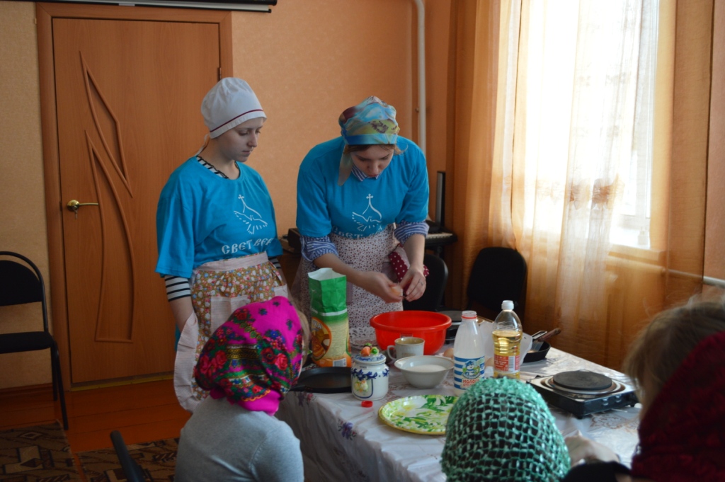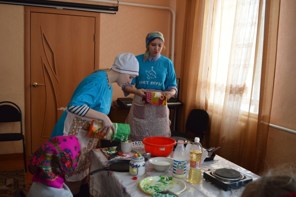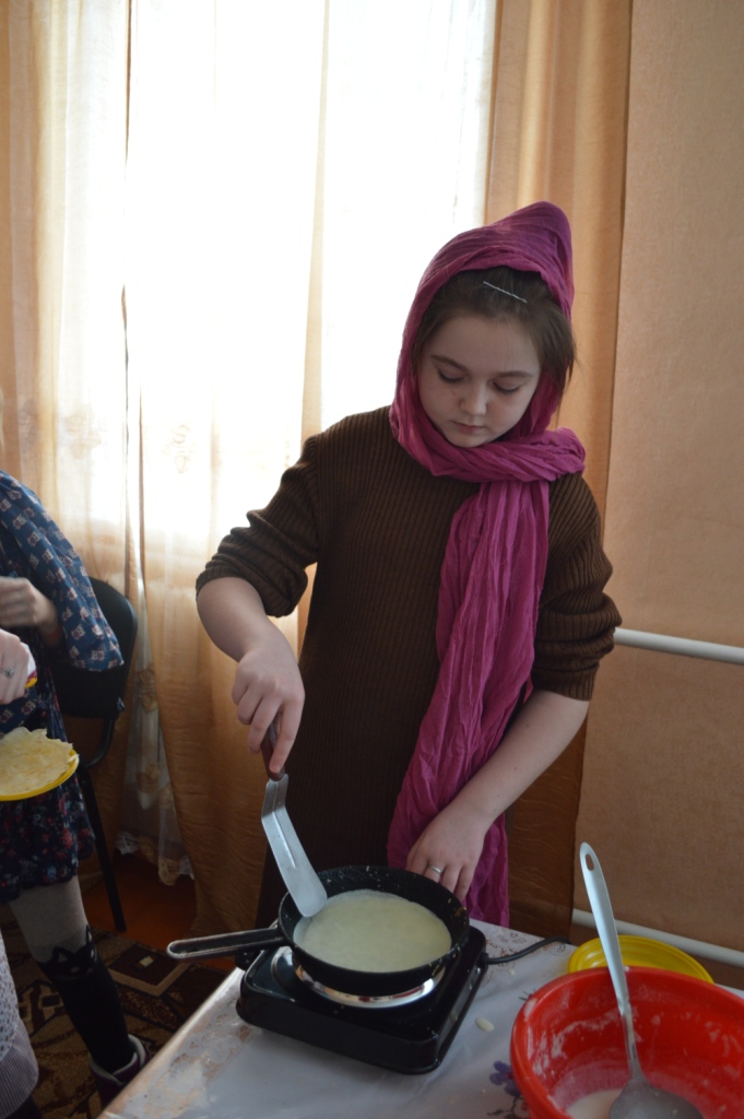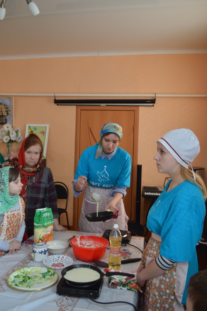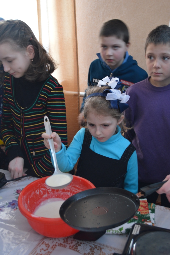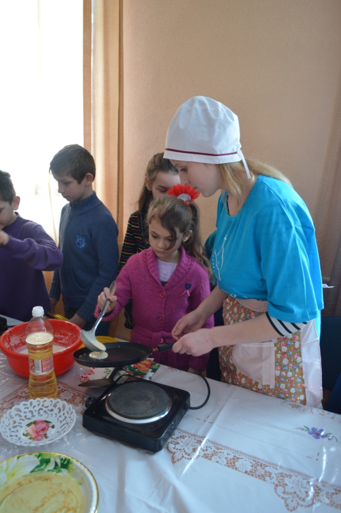 В воскресный день 3 марта для воспитанников воскресной школы храма Успения Пресвятой Богородицы г. Мглина состоялось необычное занятие. В преддверии приближающейся масленицы студентки выпускных курсов Мглинского филиала ГБПОУ «Брянский аграрный техникум имени Героя России А.С. Зайцева» Анастасия Гулакова и Мария Власенко, являющиеся представителями молодежной православной группы Мглинского благочиния «Свет веры» провели для ребят мастер-класс по выпеканию блинов.