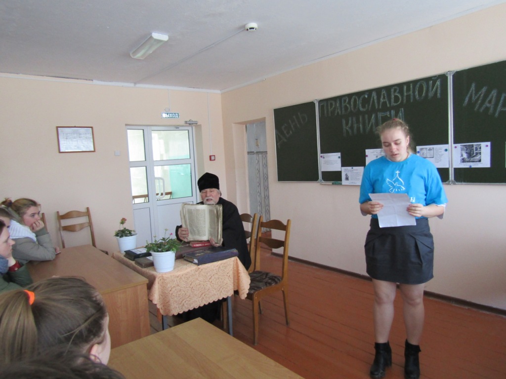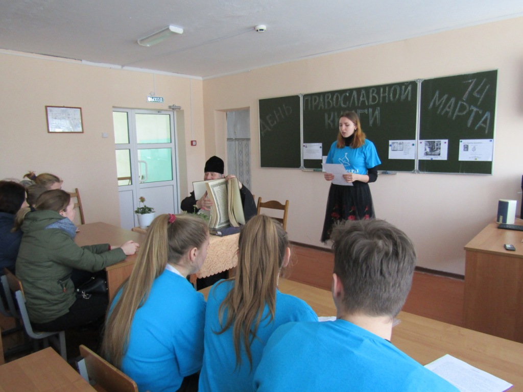 Ежегодный праздник День православной книги был учреждён Священным Синодом Русской православной Церкви по инициативе Святейшего Патриарха Московского и всея Руси Кирилла в 2009 году. С каждым годом праздник приобретает все большее значение, выходя за пределы Церкви и объединяя её со многими светскими учреждениями. В преддверии праздника в рамках совместной духовно-просветительской деятельности Прихода храма Успения Пресвятой Богородицы г. Мглина и Мглинского филиала ГБПОУ «БАТ им. Героя России А.С. Зайцева» прошло мероприятие, посвященное Дню православной книги. Мероприятие, состоявшееся в читальном зале библиотеки техникума, было открыто вступительным словом благочинного Мглинского церковного округа протоиерея Василия Климчука. Его Высокопреподобие поздравил студентов и преподавательский состав учебного заведения с грядущим Днем православной книги, пожелав, чтобы приобщение к духовному слову стало для каждого одним из путей ко Христу, а значит — залогом по- настоящему полноценной жизни.