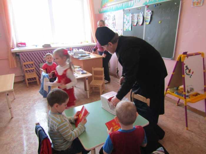 По окончании встречи с благословением всем воспитанникам детского сада и воспитателям батюшка подарил Святое Евангелие.