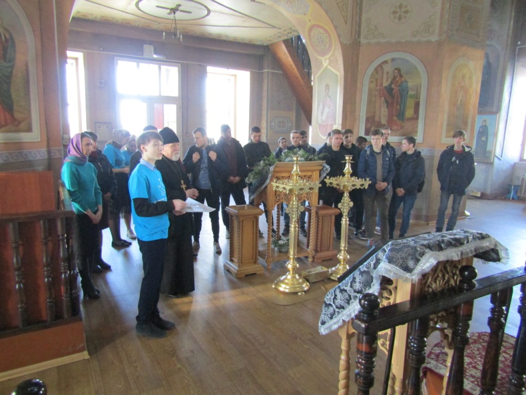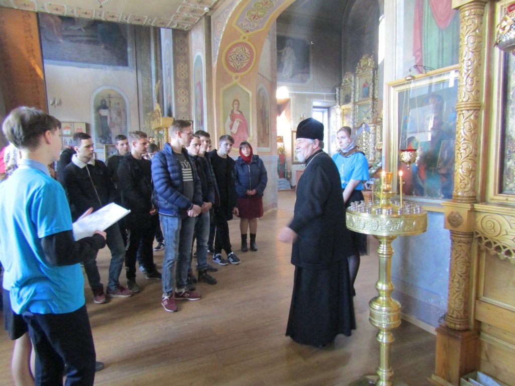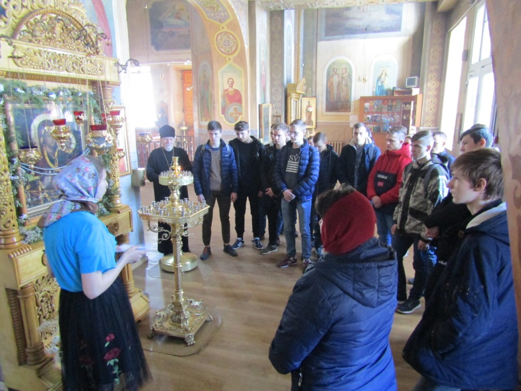 Анастасия Гулакова рассказала о святых образах, обретаемых в храме: иконе святых благоверных князей Петра и Февронии Муромских, иконе Святителя Николая и других. Особое внимание было уделено святыне Мглинского края – чудотворной иконе Божией Матери «Мглинская Одигитрия». Ее рассказ продолжила Людмила Королькова, познакомившая студентов с житием и иконой святителя Луки, архиепископа Симферопольского и Крымского, образами святых царственных страстотерпцев, святых преподобных Серафима Саровского и Сергия Радонежского, иконой святых мучениц Веры, Надежды, Любови и матери их Софии и прочими святынями, пребывающими в стенах Дома Божия.