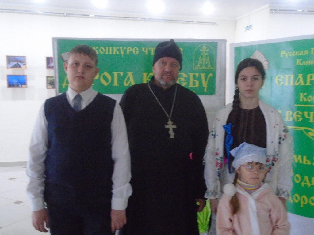 Участниками конкурса от воскресной школы Успенского храма г. Мглина стали Землянская Дарья (младшая возрастная группа), Шерстюк Владислав (средняя возрастная группа), и Порватова Кира (старшая возрастная группа).