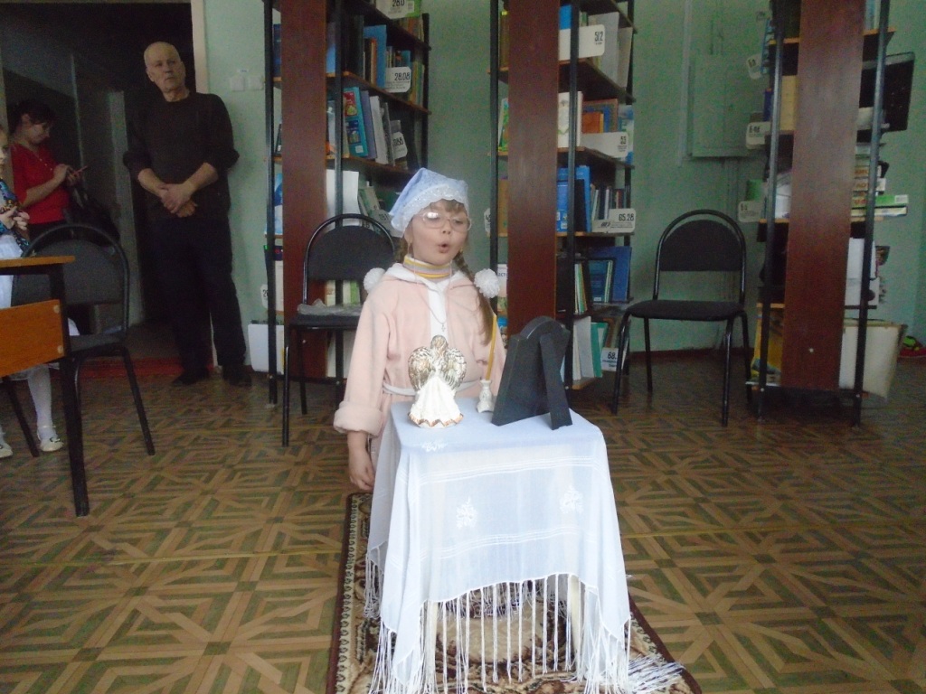 В средней возрастной группе Владислав Шерстюк продекламировал стихотворение уроженца Мглинского района В Бондаренко «Наш храм», посвященное Успенскому храму г. Мглина. С особым интересом слушали в исполнении Дударевой Александры сказание В.Песни об истории Свенского монастыря и о герое Куликовской битвы Александре Пересвете.