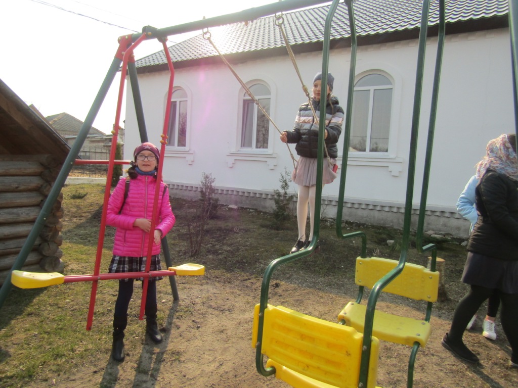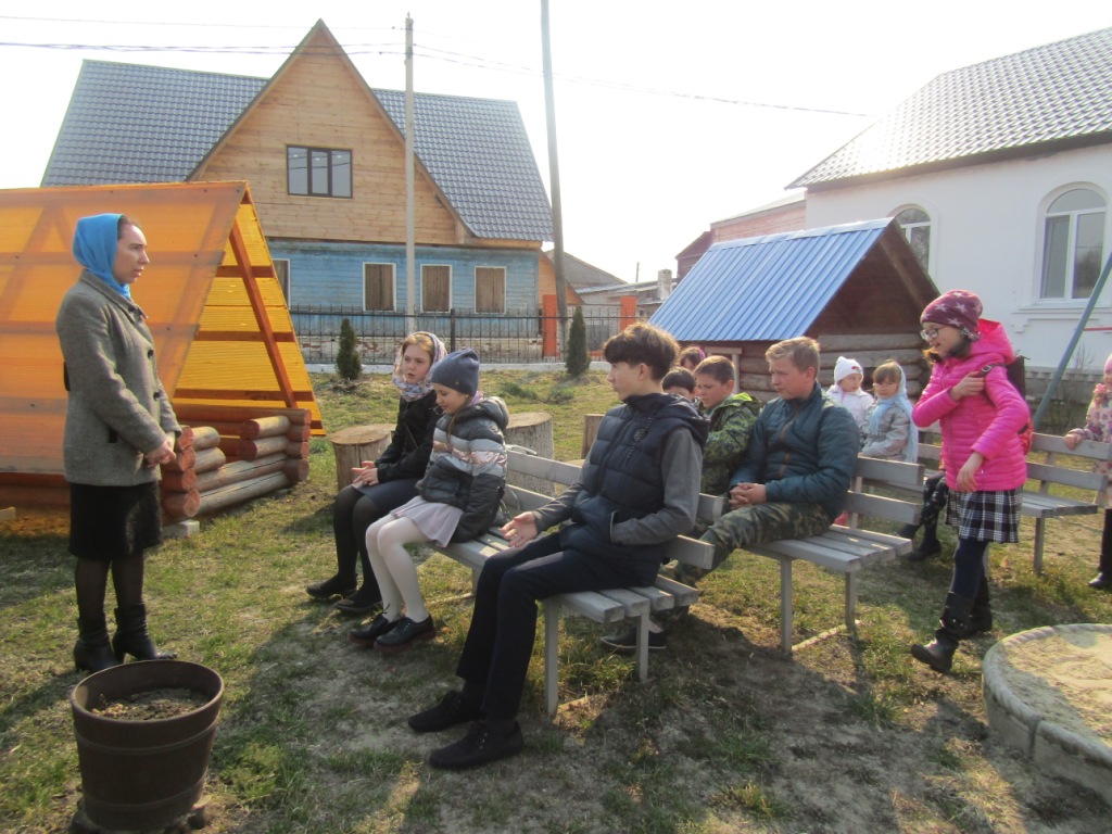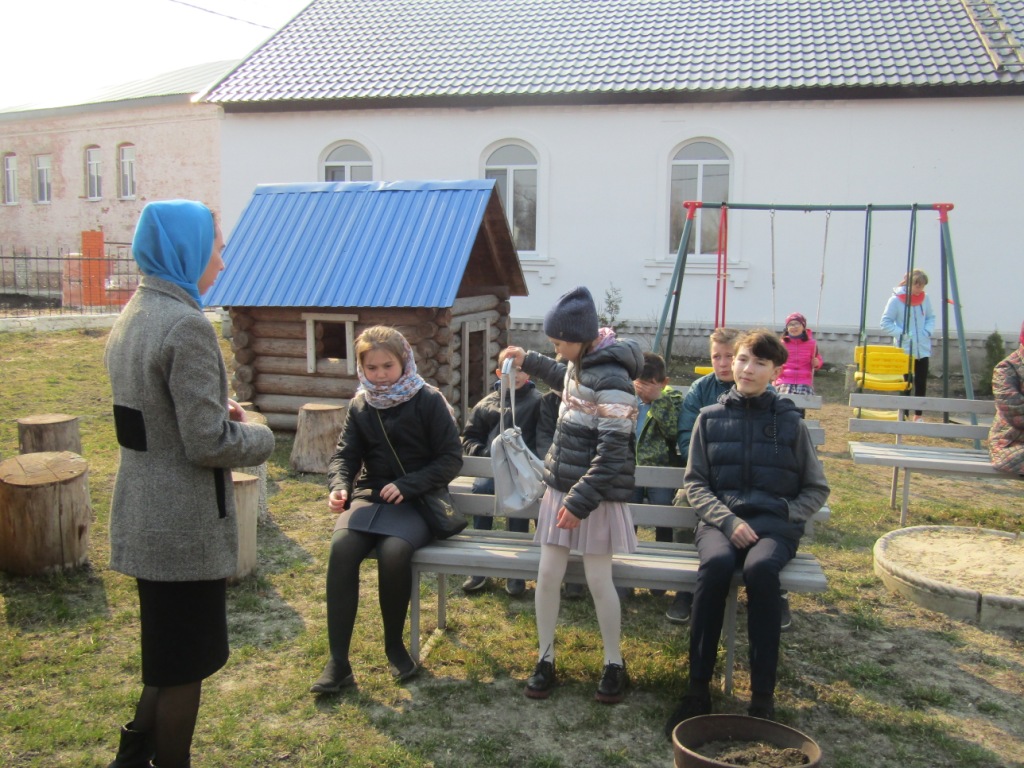 В праздник Благовещения Пресвятой Богородицы очередное занятие в воскресной школе Успенского храма г. Мглина прошло на детской площадке. Урок, посвященный событиям чтимого ныне торжества, провела директор воскресной школы Светлана Александровна Рыжакова. Учитель рассказала своим подопечным, как архангел Гавриил принес Деве Марии радостную благую весть о грядущем рождении от Нее Иисуса Христа, Сына Божия и Спасителя мира. Ребята в ходе занятия вспомнили евангельское повествование о Благовещении, поразмышляли о свободе, послушании и смирении, познакомились с благочестивыми традициями празднования Благовещения. В завершение беседы воспитанники школы обсудили под руководством преподавателя значение и смысл оставшихся великопостных недель в деле работы над собой, выслушали наставление преподавателя на благое прохождение сего душеспасительного времени.