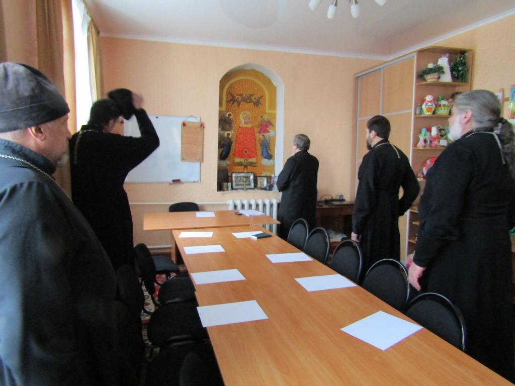 11 апреля состоялось очередное заседание духовенства Мглинского благочиния, которое предварила совместная молитва. Работу собрания возглавил благочинный Мглинского церковного округа протоиерей Василий Климчук. На повестку дня были вынесены вопросы, рассмотренные ранее на Епархиальном Совете Клинцовской епархии. Сугубое внимание было уделено предстоящей подготовке к празднованию Светлого Христова Воскресения на Приходах, организации и проведении просветительской акции «Пасхальная листовка» и участии воспитанников воскресных школ в Пасхальном фестивале Клинцовской епархии.