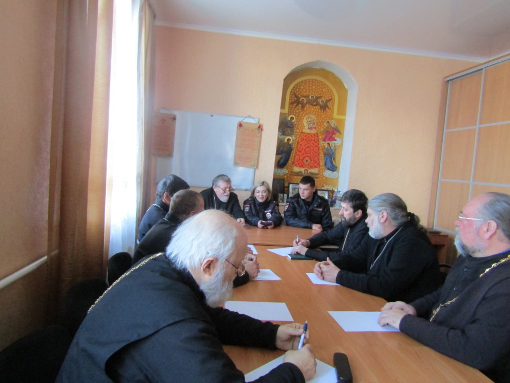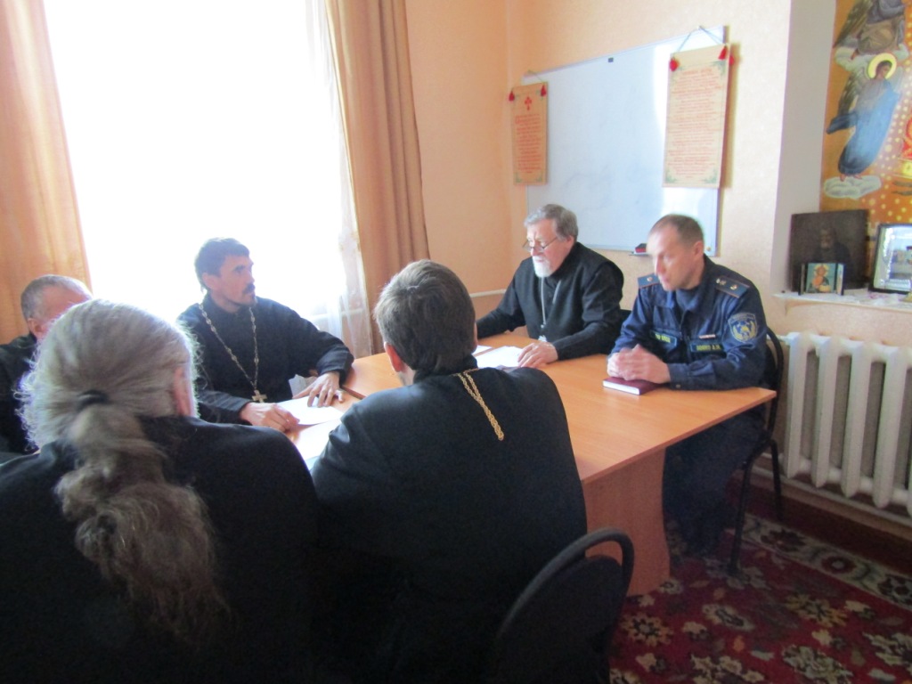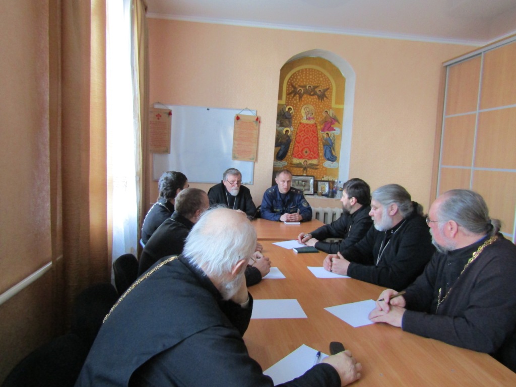 В работе собрания приняли участие представители пожарно-спасательной службы и полиции. Начальником пожарно-спасательной части № 45 города Мглина Александром Михайловичем Ломко до сведения духовенства была доведена информация и проведен инструктаж о мерах и правилах пожарной безопасности, а также о выполнении требований органов управления Государственной противопожарной службы на Приходах. Был выработан комплекс мер по обеспечению пожарной безопасности во время проведения праздников Пасхального периода в храмах.
