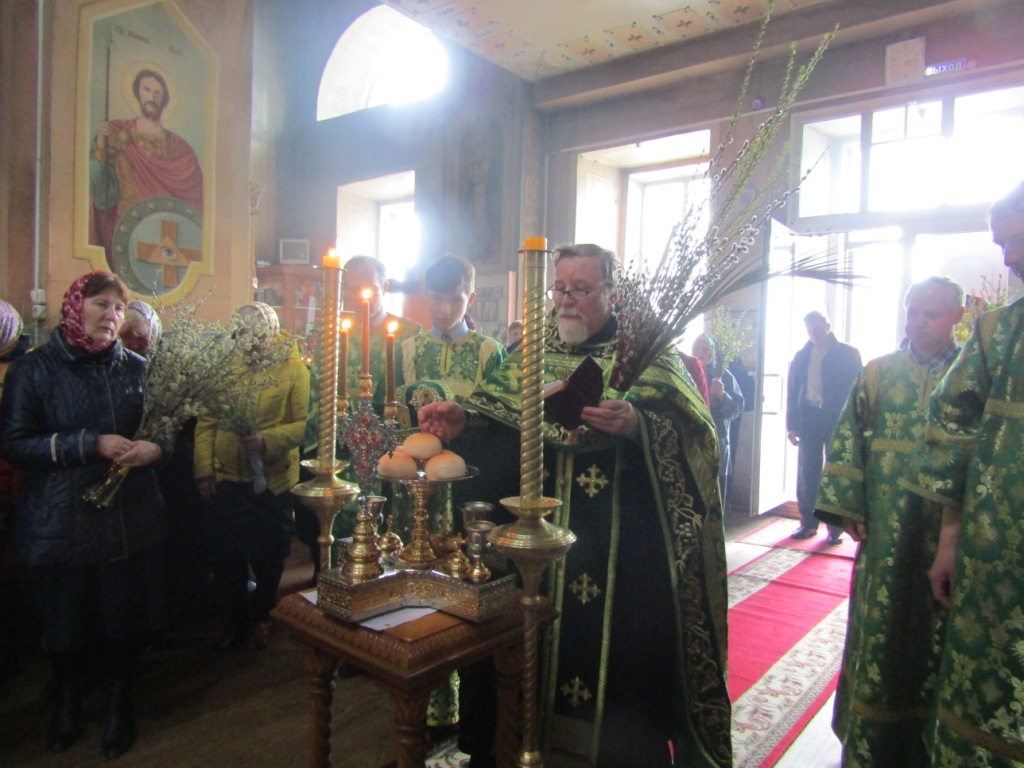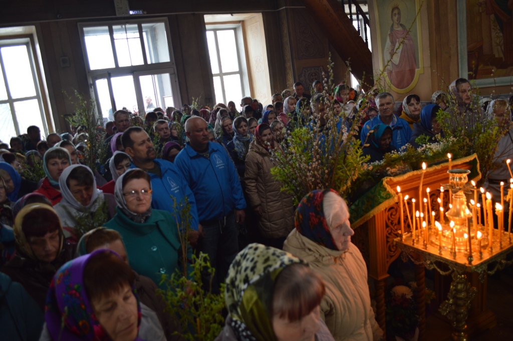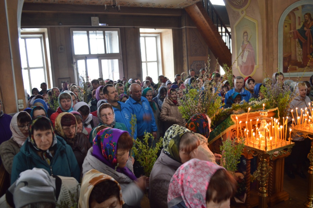 Праздник Входа Господня в Иерусалим, на время преодолевающий сосредоточенно-скорбное настроение Великого поста и предваряющий радость Святой Пасхи, молящиеся встречали с ветвями вербы и зажженными свечами — в воспоминание торжественного Входа Царя Славы на вольные страдания. Молитвенно ожидая встречи со Спасителем в грядущем празднике Святой Пасхи, многие прихожане сподобились встретиться с Господом уже в нынешний день, приобщившись Пречистых и Животворящих Таин Тела и Крови Христовых. После Литургии был отслужен праздничный молебен.