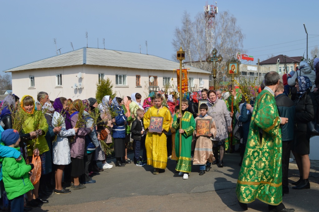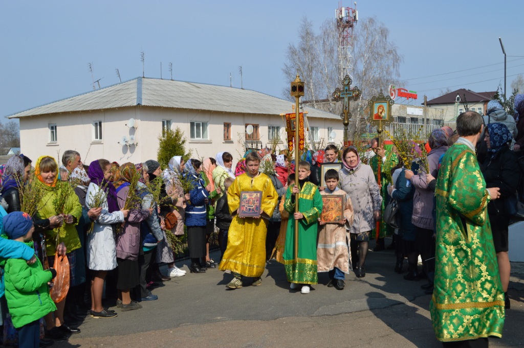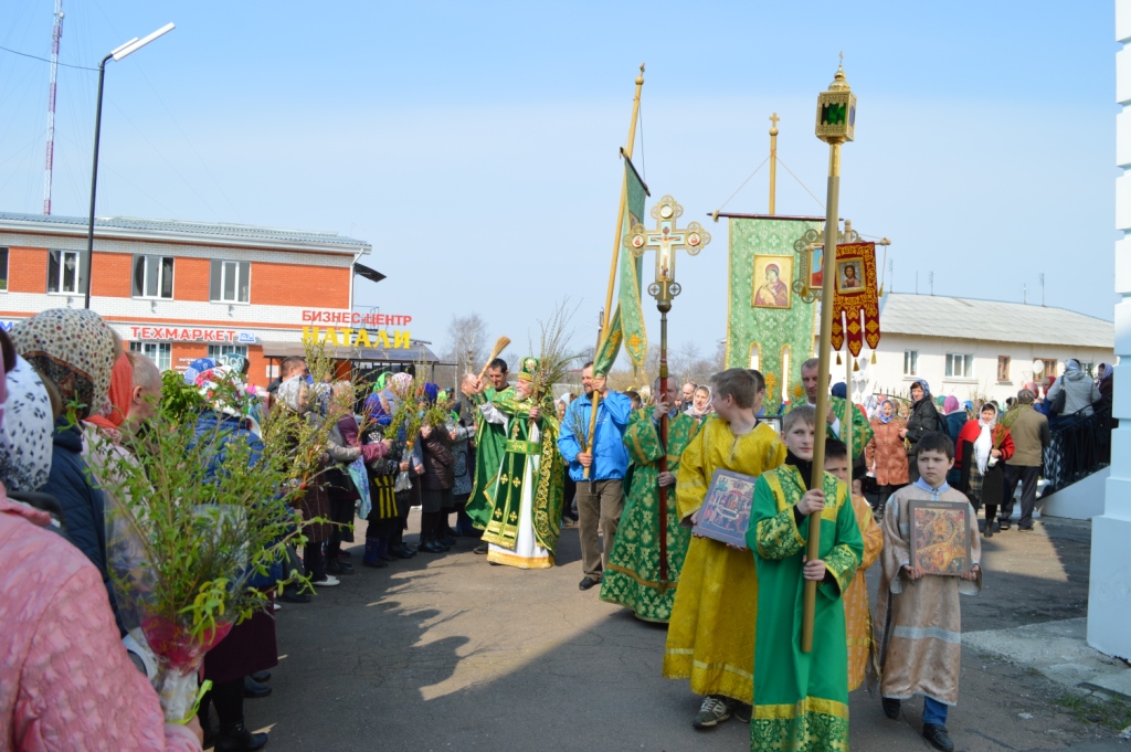 Торжество увенчал праздничный крестный ход. Прихожане, как и жители Израиля почти 2000 лет назад, с ветвями верб прославили Вход Господень в Иерусалим. Ветви ваий и верб щедро окроплялись водой отцом настоятелем в знак проникающей благодати Божией и грядущей встречи со Спасителем.