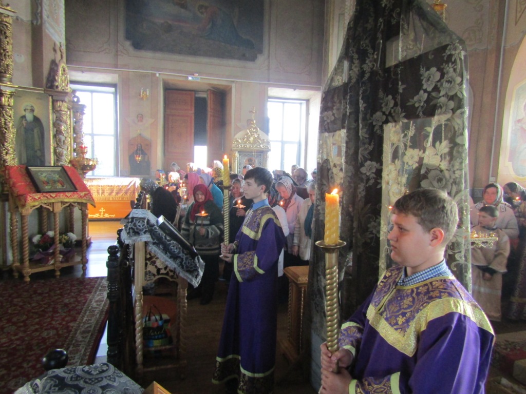 Вечером, в четверг Страстной седмицы в храме Успения Пресвятой Богородицы г. Мглина благочинный Мглинского церковного округа, настоятель храма протоиерей Василий Климчук совершил утреню Великого Пятка с чтением 12-и Евангелий Святых Страстей Господа нашего Иисуса Христа. Все это богослужение посвящено благоговейному воспоминанию спасительных страданий и крестной смерти Богочеловека. Каждый час этого дня есть новый подвиг Спасителя, и отголосок этих подвигов внимался прихожанами в каждом слове богослужения. Церковь эти богослужением раскрывает пред верующими полную картину страданий Господних, начиная от кровавого пота в Гефсиманском саду и до Голгофского распятия. Переносясь мысленно через минувшие века, участники богослужения соделались трепетными зрителями всех мучений Спасителя. Верующие с зажженными свечами мысленно предстояли у подножия Креста Христова, с трепетом и благоговением вслушиваясь в Евангельские повествования, после каждого чтения молящиеся вторили пению хора: «Слава долготерпению Твоему, Господи!»
