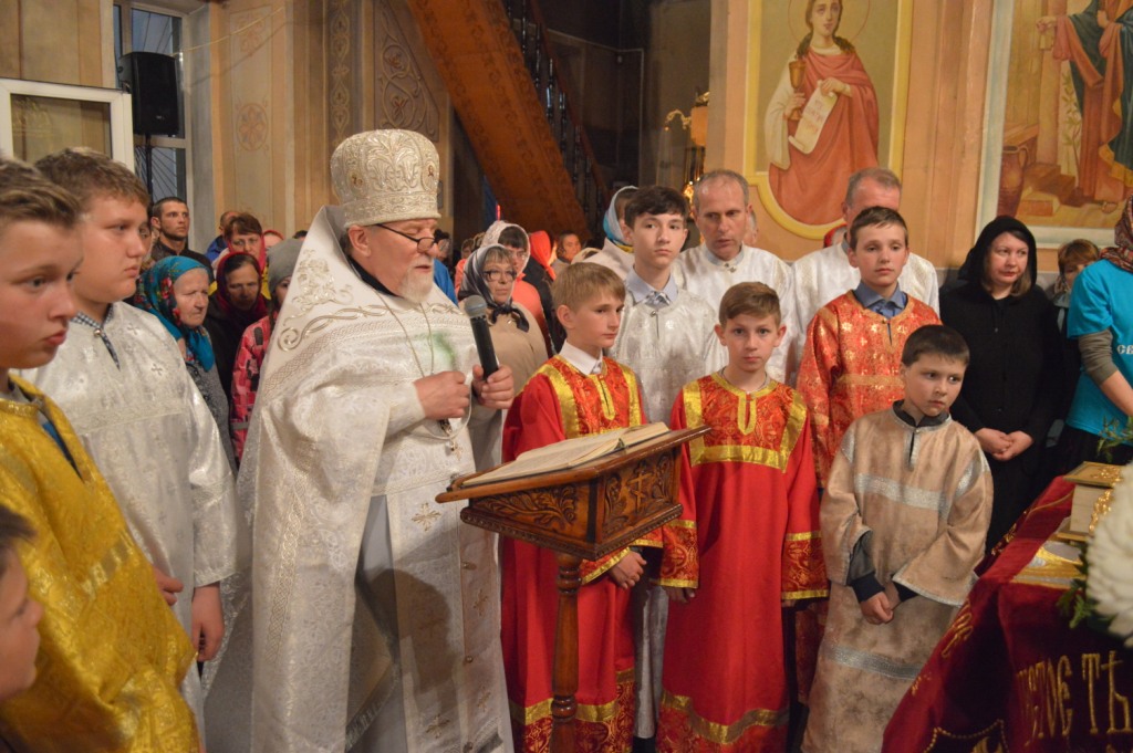За богослужением протоиерей Василий Климчук огласил Пасхальные послания Святейшего Патриарха Московского и всея Руси Кирилла и Преосвященнейшего Владимира, епископа Клинцовского и Трубчевского, Пасхальные поздравления вице-губернатора, первого заместителя председателя Правительства Брянской области Александра Григорьевича Резунова и Главы администрации Мглинского района Александра Александровича Пущиенко. Отец настоятель также от себя лично поздравил всех собравшихся под сводами Дома Божия с великим праздником Воскресения Христова.