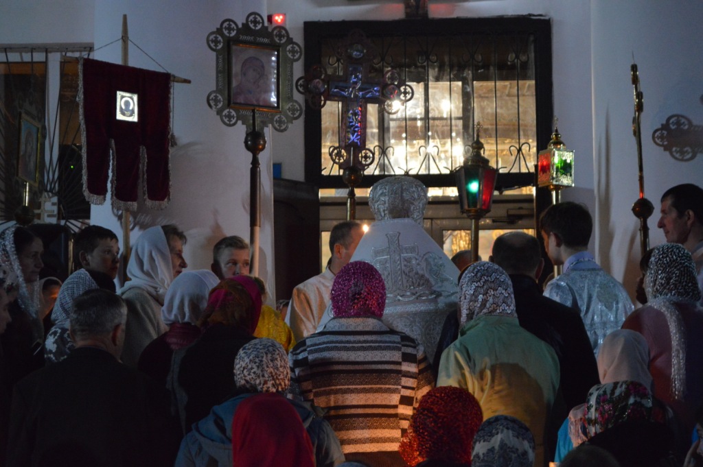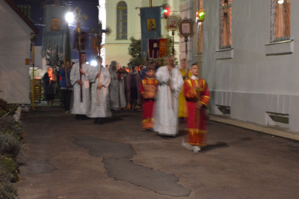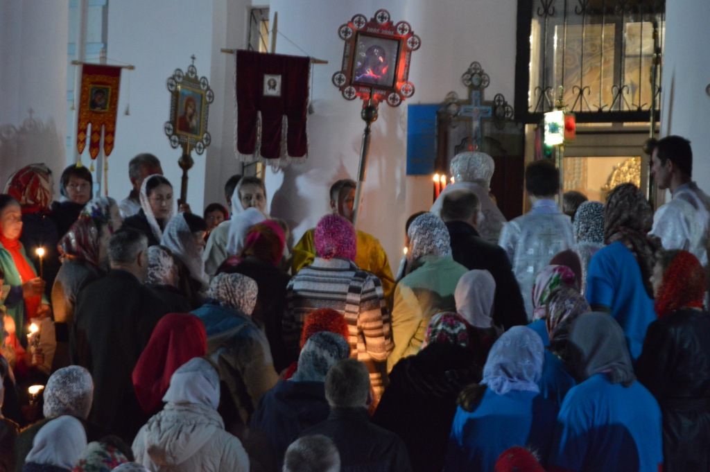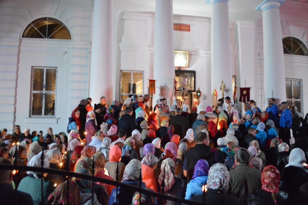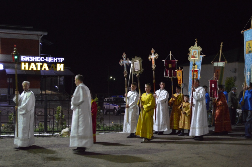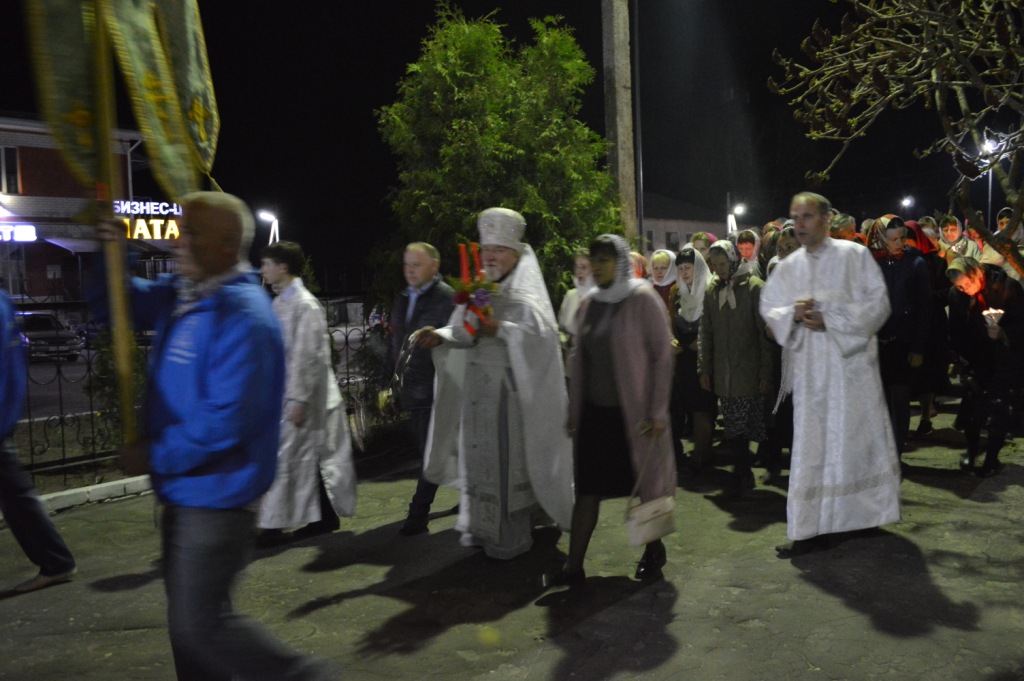 С трепетным ощущением приближающейся радости пасхальную утреню предварил крестный ход вокруг храма, и людской поток подхватил восторженный возглас: «Христос Воскресе!», в один голос откликаясь: «Воистину Воскресе!».