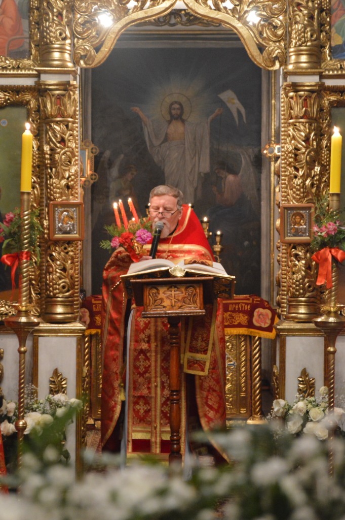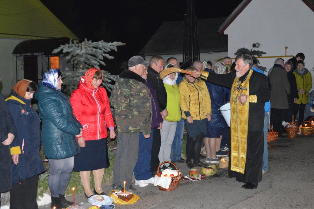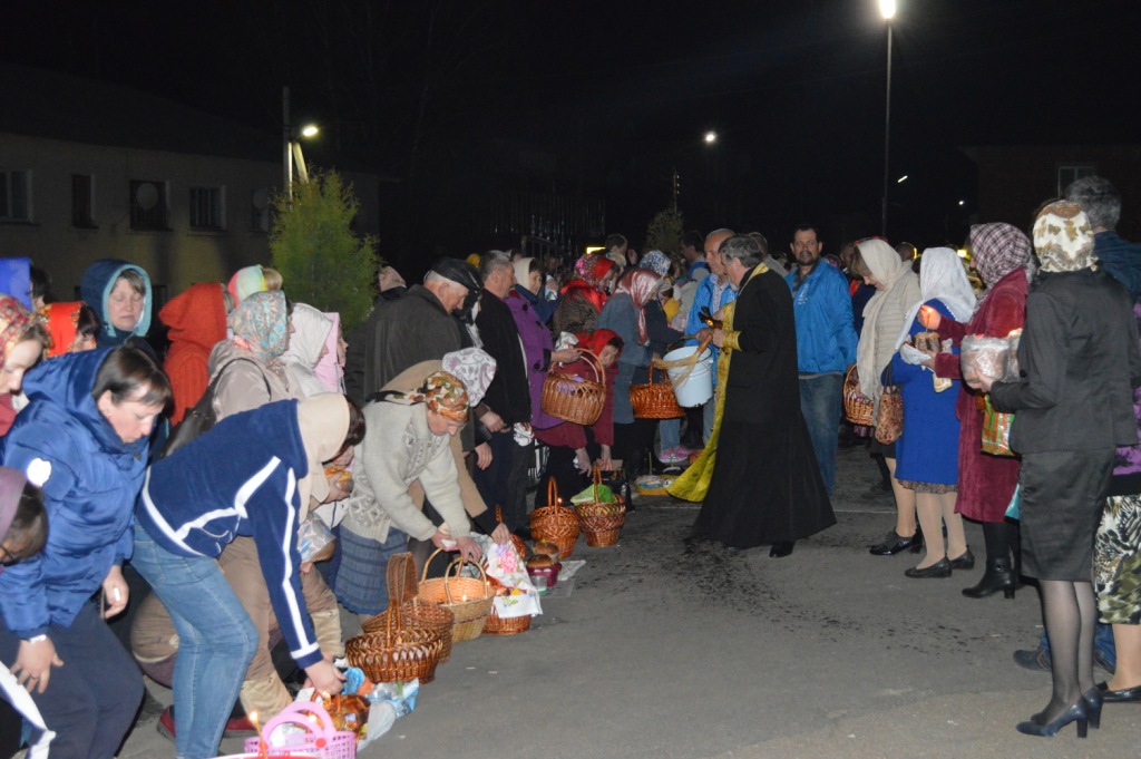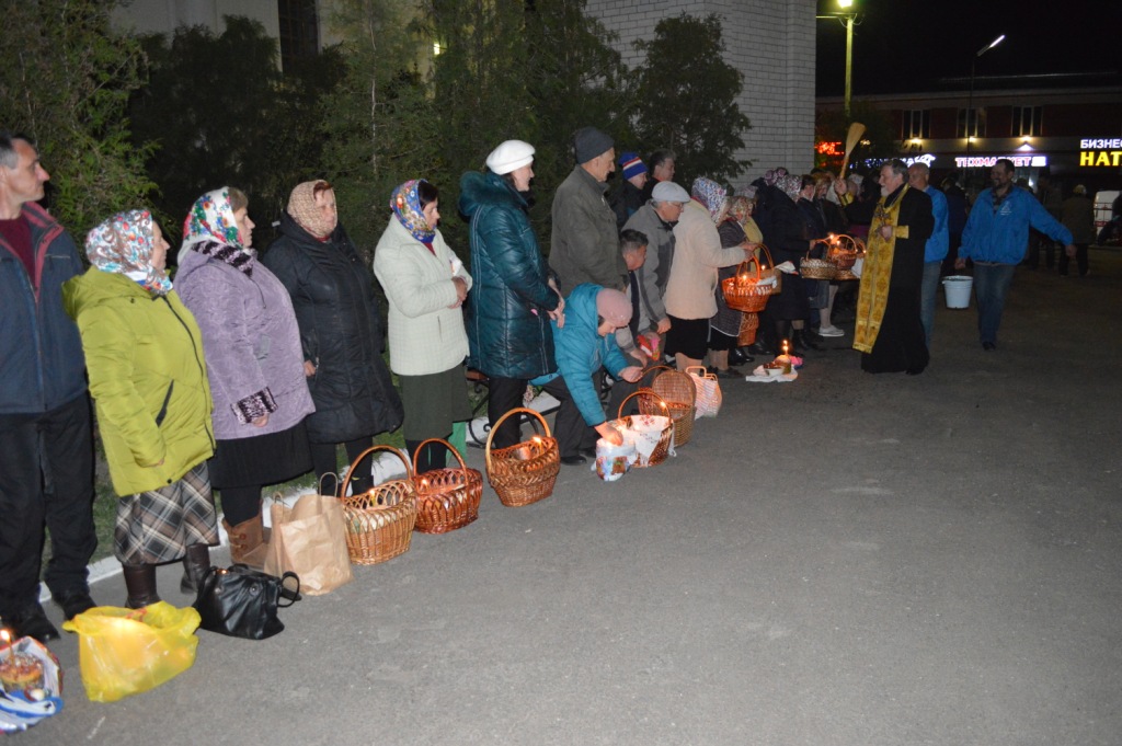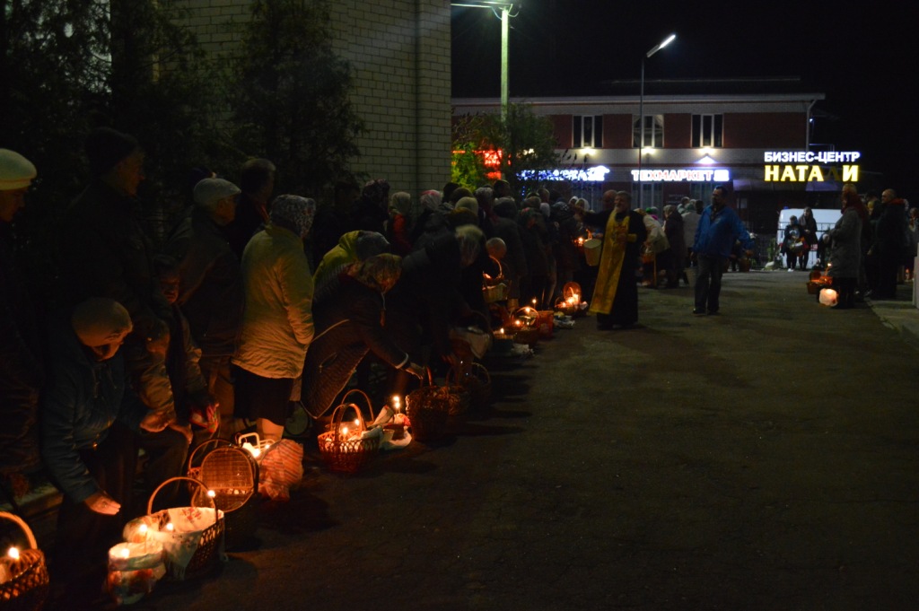 Высокоторжественное богослужение завершилось традиционным освящением пасхальной снеди. Щедрое окропление святой водой пасхальных приношений вызывало искреннюю радость всех собравшихся в эту святую ночь прославить Воскресшего Спасителя. Со всех сторон от силы преизбыточествующей духовной радости о Восставшем из гроба Спасителе мира раздавались ликующие возгласы «Христос воскресе!» — «Воистину воскресе!»
