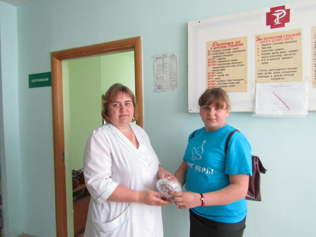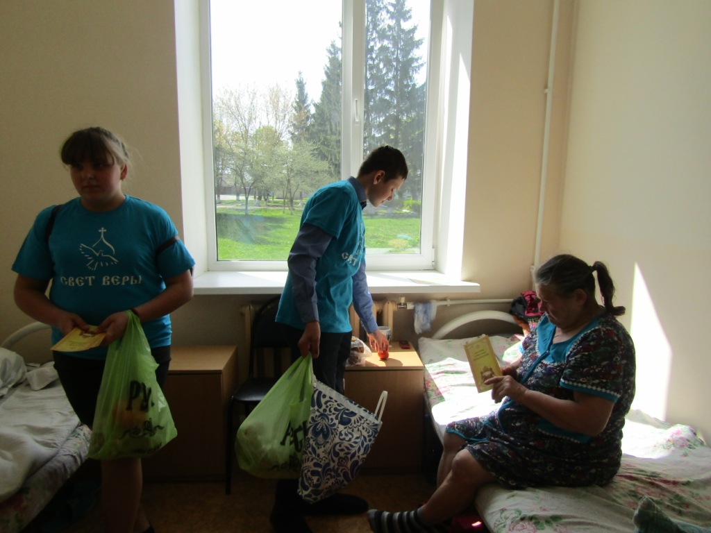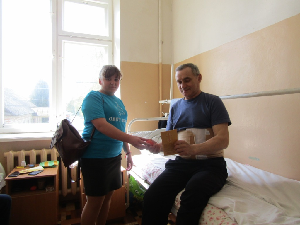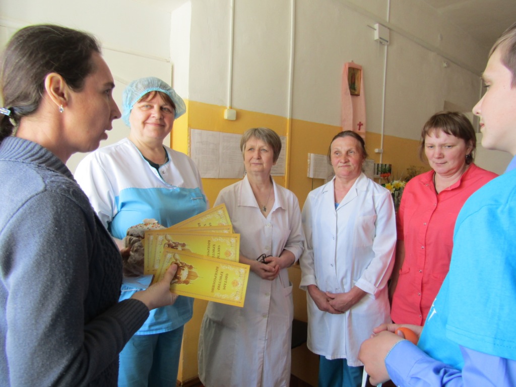 Пасхальная радость торжества Воскресения Христова неизменно проникнута делами милосердия и сострадания страждущим, свидетельством всему миру о победе жизни над смертью. «Я был болен, и вы посетили Меня» - эти строки из Евангелия от Матфея стали особенно близки и понятны пациентам и сотрудникам всех отделений Мглинской ЦРБ, которые посетили представители православной молодежной группы «Свет веры» во главе с помощником благочинного по работе с молодежью С.А.Рыжаковой.