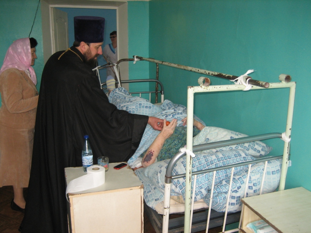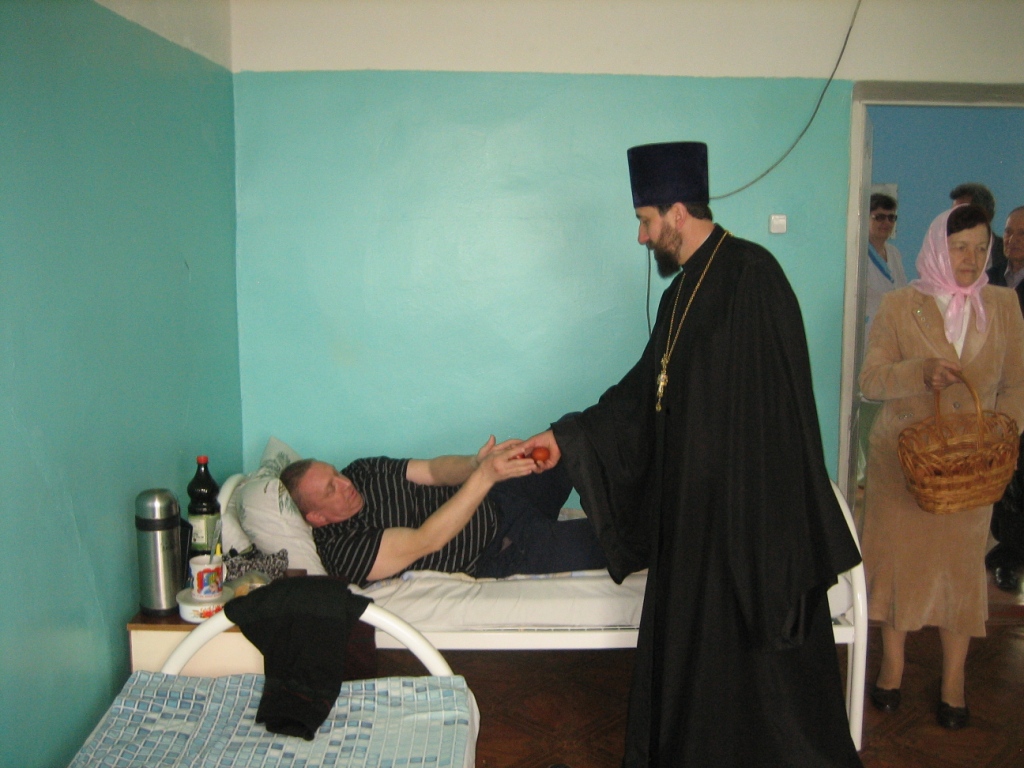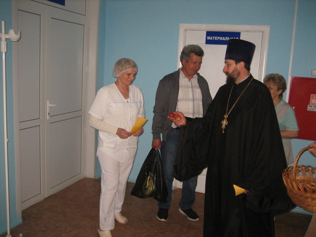 В праздник Пасхи настоятель храма Благовещения Пресвятой Богородицы г. Суража протоиерей Владимир Фараон посетил Суражскую ЦРБ. Пациенты лечебницы и медицинские работники - те, кто не сподобились стать сопричастниками Пасхального богослужения в стенах храма, с радостью принимали поздравления батюшки, с ликованием озаряя больничные палаты пасхальными возгласами: «Христос воскресе!» - «Воистину воскресе!». Протоиерей Владимир посетил недугующих в палатах, преподнося в дар каждому с благословением и словами поздравлений со светозарным праздником Воскресения Христова пасхальные дары: кулич, крашеные яйца и пасхальную листовку.