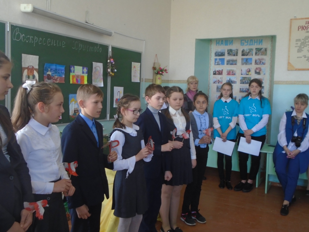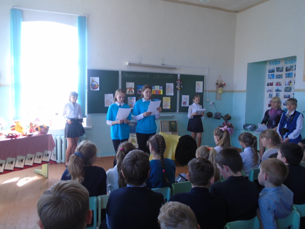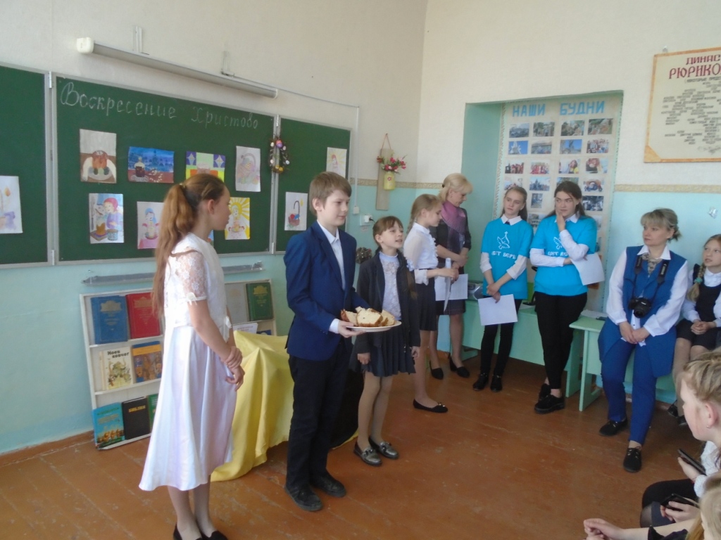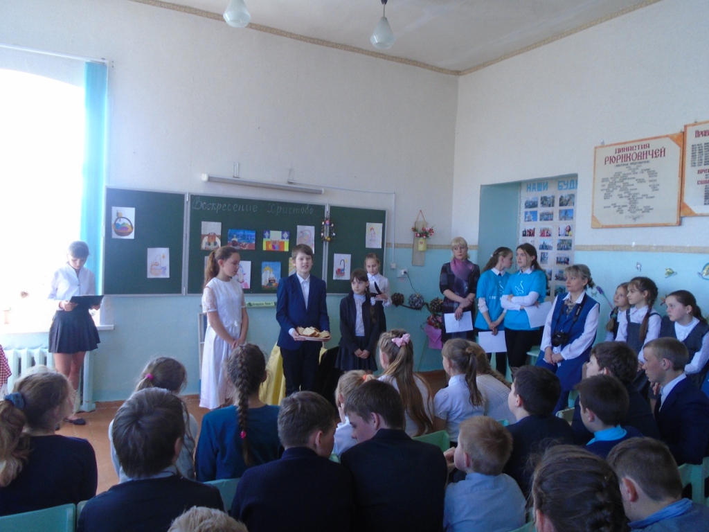 В мероприятии приняли участие представители православной молодежной группы Мглинского благочиния «Свет веры», которые представили вниманию присутствующих малоизвестные факты, связанные с историей праздника Пасхи и евангельскими событиями Воскресения Христова. Своеобразным итогом мероприятия стало разгадывание пасхальных загадок, обобщивших знания, полученные детьми в ходе встречи. Завершился школьный праздник угощением всех его участников традиционным пасхальным куличом и взаимным победоносным ликованием: «Христос воскресе! – Воистину воскресе!».