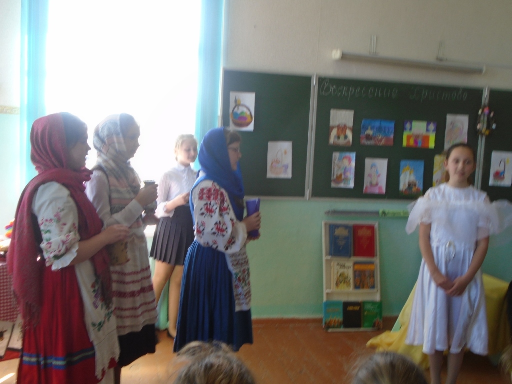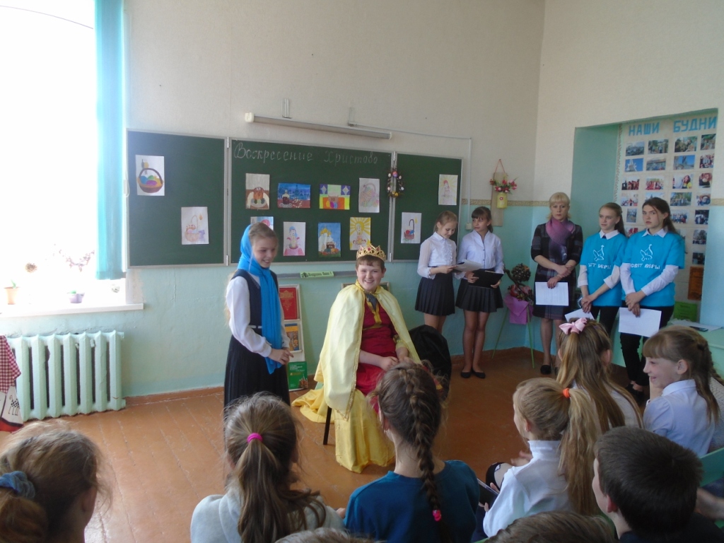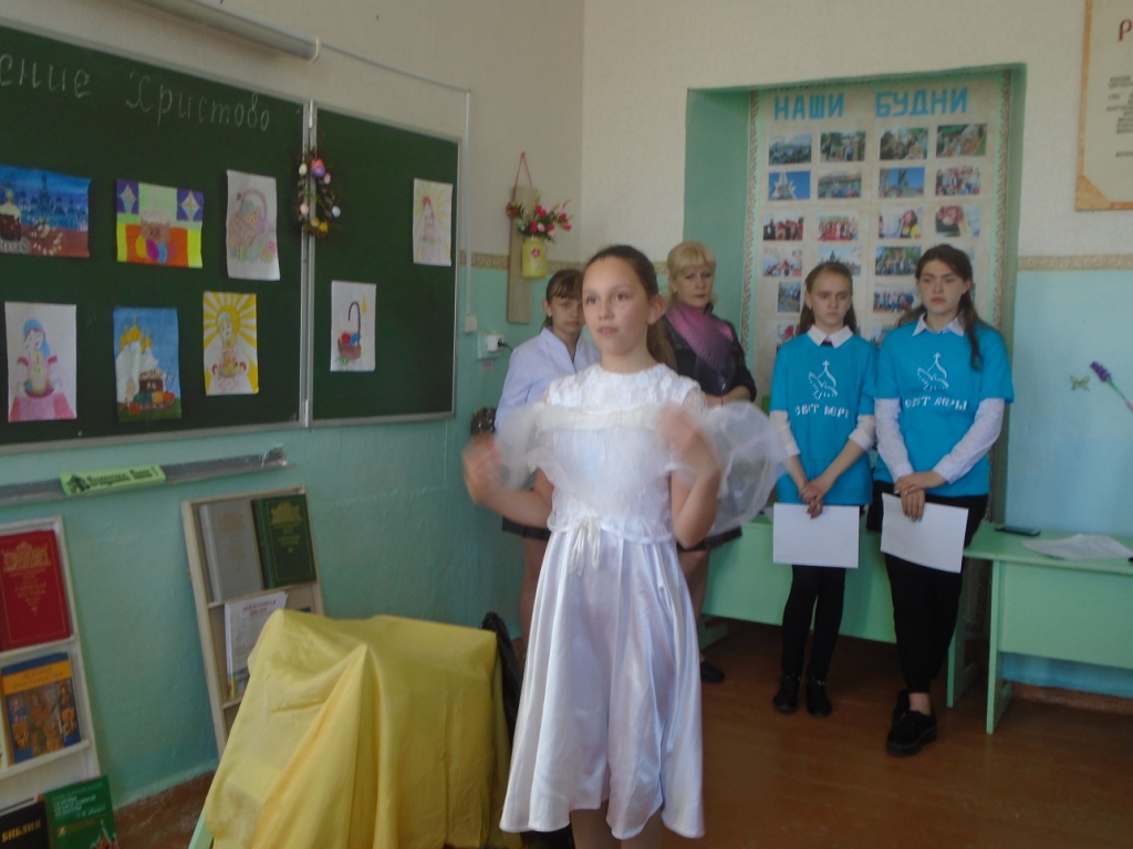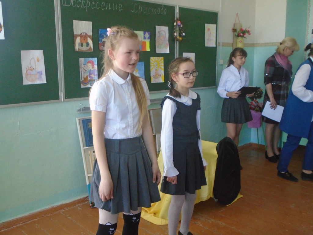 В мероприятии приняли участие представители православной молодежной группы Мглинского благочиния «Свет веры», которые представили вниманию присутствующих малоизвестные факты, связанные с историей праздника Пасхи и евангельскими событиями Воскресения Христова. Своеобразным итогом мероприятия стало разгадывание пасхальных загадок, обобщивших знания, полученные детьми в ходе встречи. Завершился школьный праздник угощением всех его участников традиционным пасхальным куличом и взаимным победоносным ликованием: «Христос воскресе! – Воистину воскресе!».