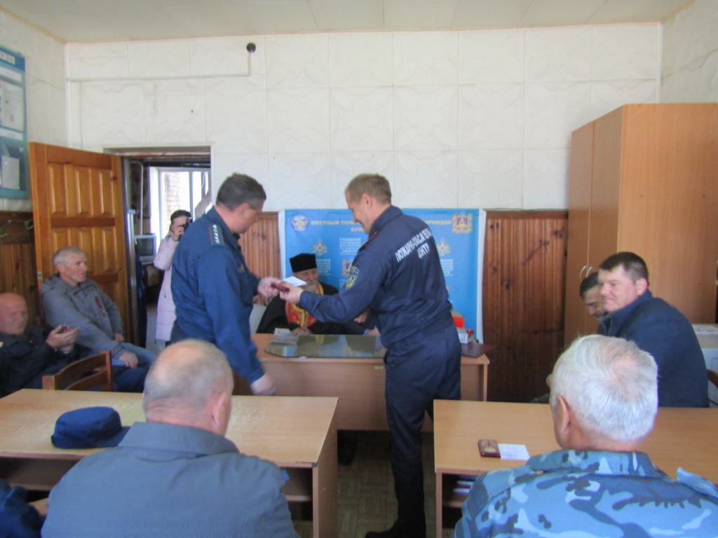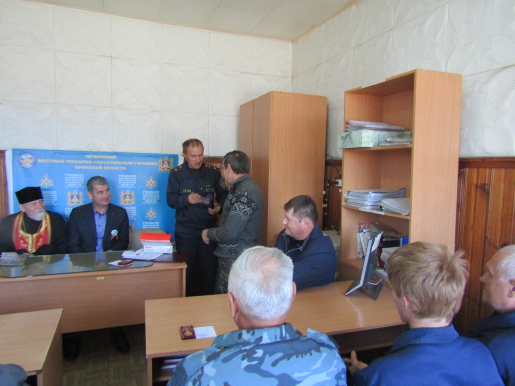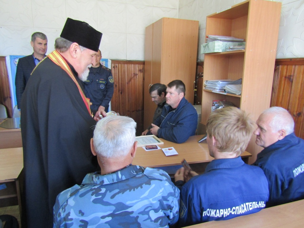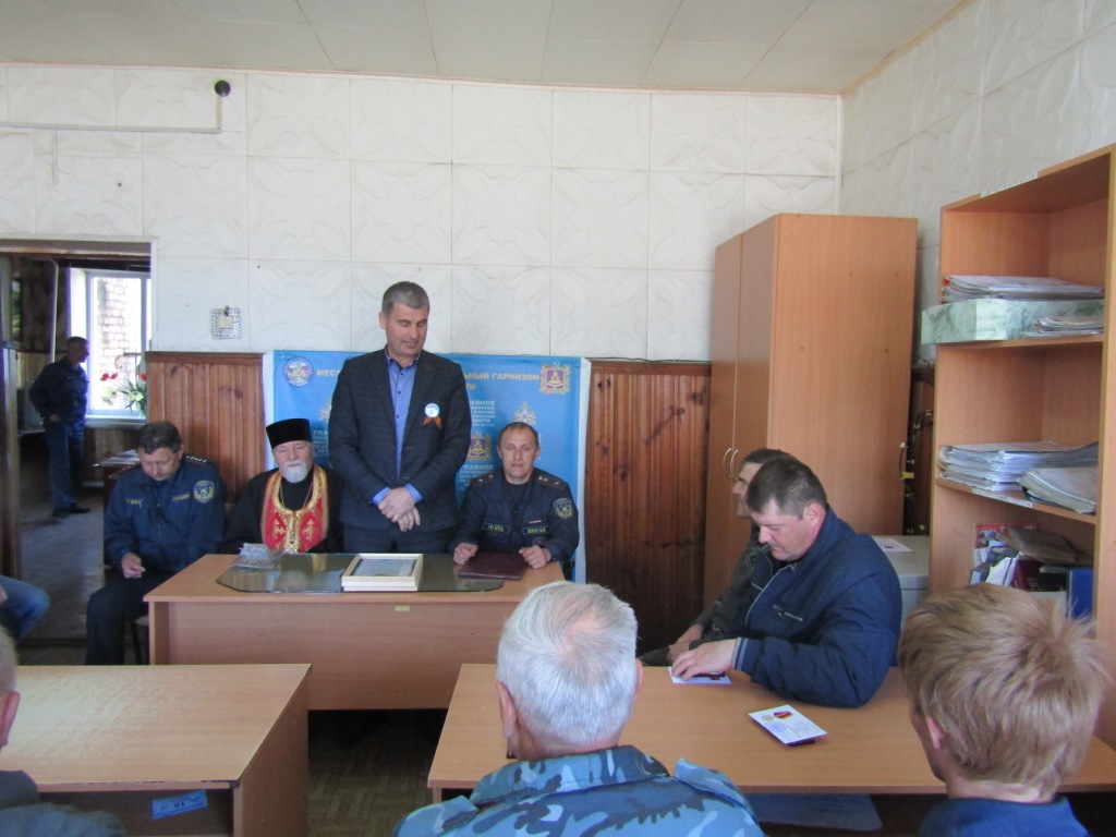 Поздравления с профессиональным торжеством от благочинного Мглинского церковного округа протоиерея Василия Климчука принимал и личный состав структурного подразделения Брянского пожарно – спасательного Центра ПЧ-45 по охране г. Мглина. Его Высокопреподобие отслужил молебен, за которым молились все сотрудники во главе с начальником Александром Михайловичем Ломко и заместителем Главы администрации Мглинского района Казеко Александром Николаевичем. По завершении богослужения священнослужитель поздравил личный состав и ветеранов службы с профессиональным праздником, поблагодарил за спасение человеческих жизней, призвал благословение Господне в несении важной службы помощи ближнему в чрезвычайных ситуациях и пожелал помощи Божией на их многотрудном профессиональном поприще. По случаю профессионального праздника батюшка подарил пожарникам иконки Божией Матери «Неопалимая купина» - защитницы и покровительницы тех, чья служба связана с борьбой с огненной стихией.