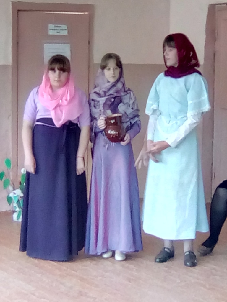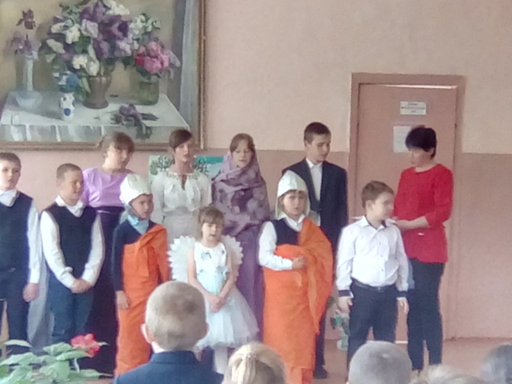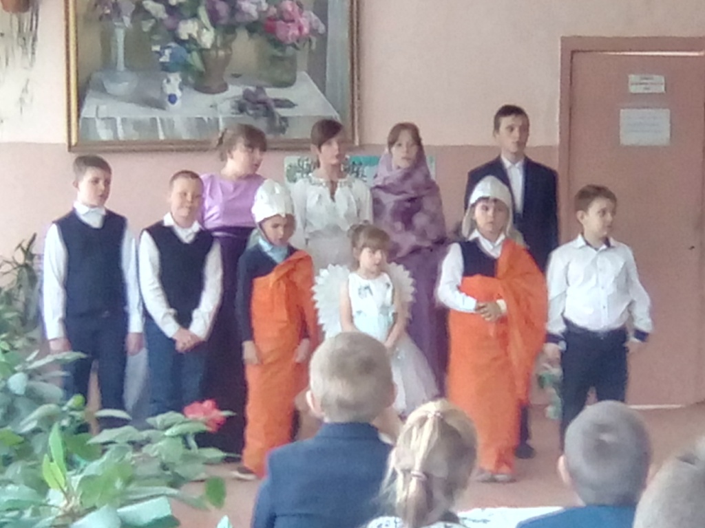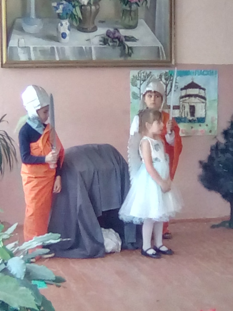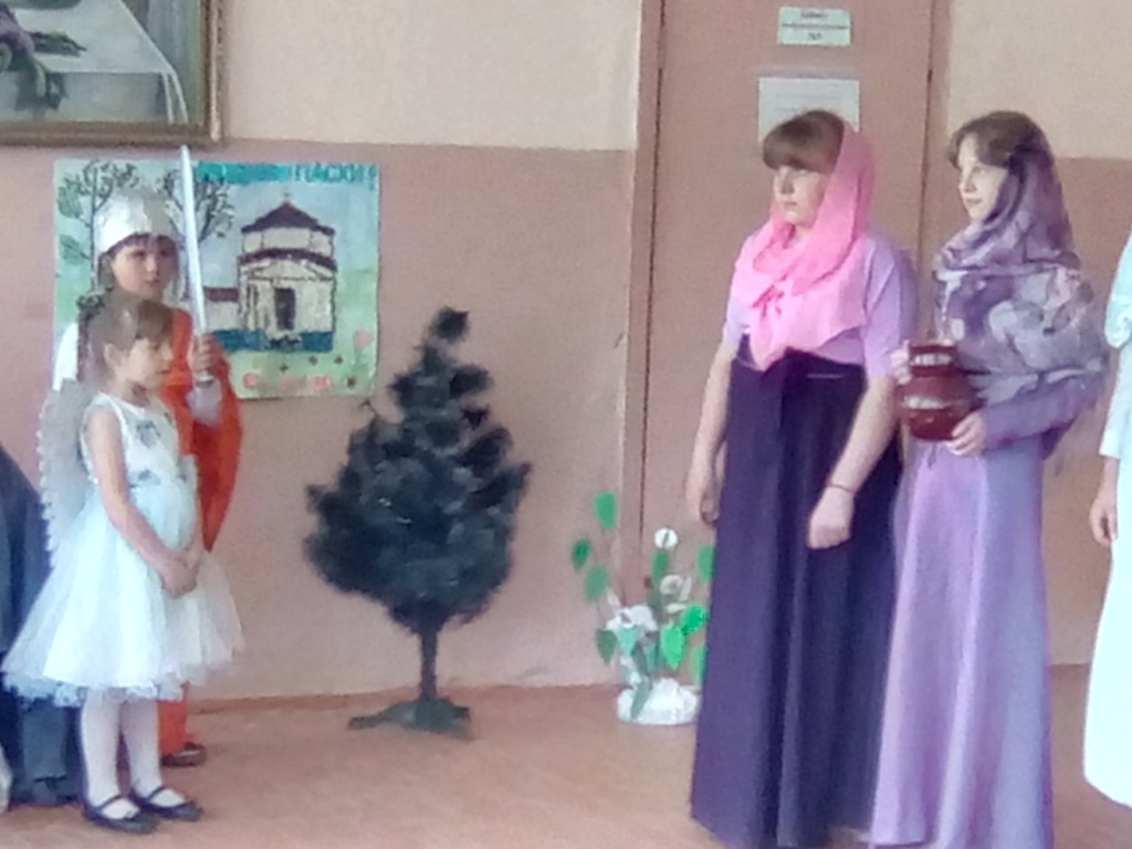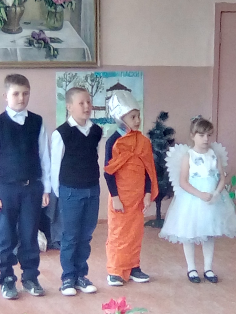 Открыла пасхальное мероприятие вступительным словом Т.В.Сивакова. Далее слово было передано ее подопечным, которые содержательно познакомили гостей праздника с событиями последних дней земной жизни Иисуса Христа, рассказав о великом значении Воскресения Христова для всего рода христианского. Ребята представили собравшимся костюмированную Пасхальную сказку о Красной шапочке, инсценировку «Жены – мироносицы» и хореографическую композицию «Вербочки». В стихах, песнях и инсценировках школьники рассказали о том, как горячая вера в Бога и светлая пасхальная радость преображает мир и меняет жизнь человека.