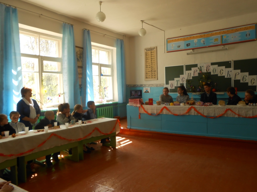 «Христос воскресе! - Воистину воскресе!» - этими словами открылось общешкольное мероприятие, посвященное Светлому Воскресению Христову, прошедшее в Краснокосаровской СОШ. Провела школьный праздник преподаватель физики и математики и по совместительству учитель воскресной школы храма Успения Пресвятой Богородицы г. Мглина Елена Ивановна Бабакова, которая рассказала ребятам о последних днях земной жизни Спасителя и евангельских событиях, предшествоваших Воскресению Иисуса Христа. Светлая Пасха — это праздник победы любви над злом, жизни над смертью, это праздник нашей надежды на всеобщее воскресение – эти постулаты были прочно усвоены детьми в ходе мероприятия, программа которого включала в себя песни и стихи в исполнении самих учащихся, прославляющие Воскресение Христово. Особое внимание было уделено учителем рассказу о чуде схождения Благодатного огня и Туринской Плащанице. Завершилось школьное торжество чаепитием с традиционными пасхальными угощениями- куличами и крашеными яйцами.