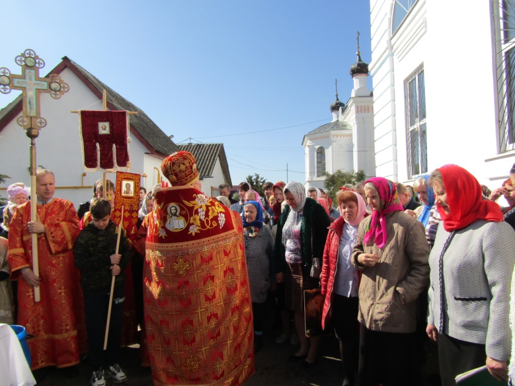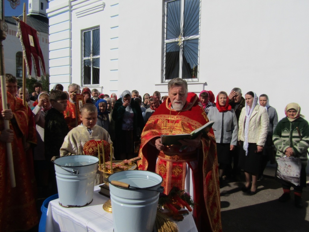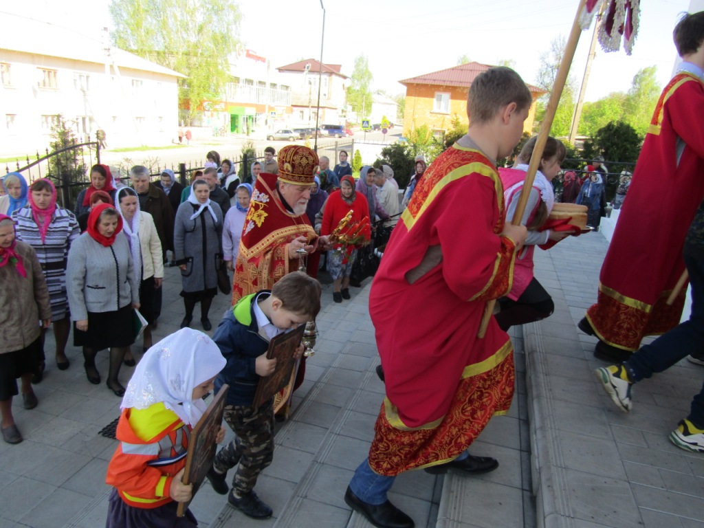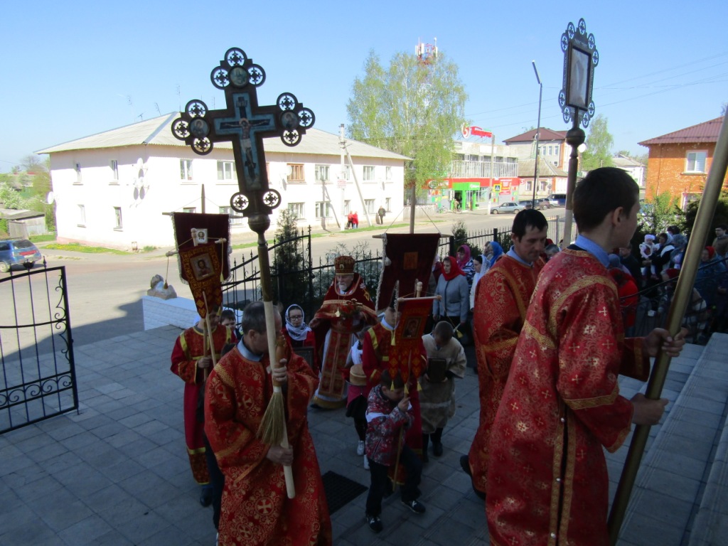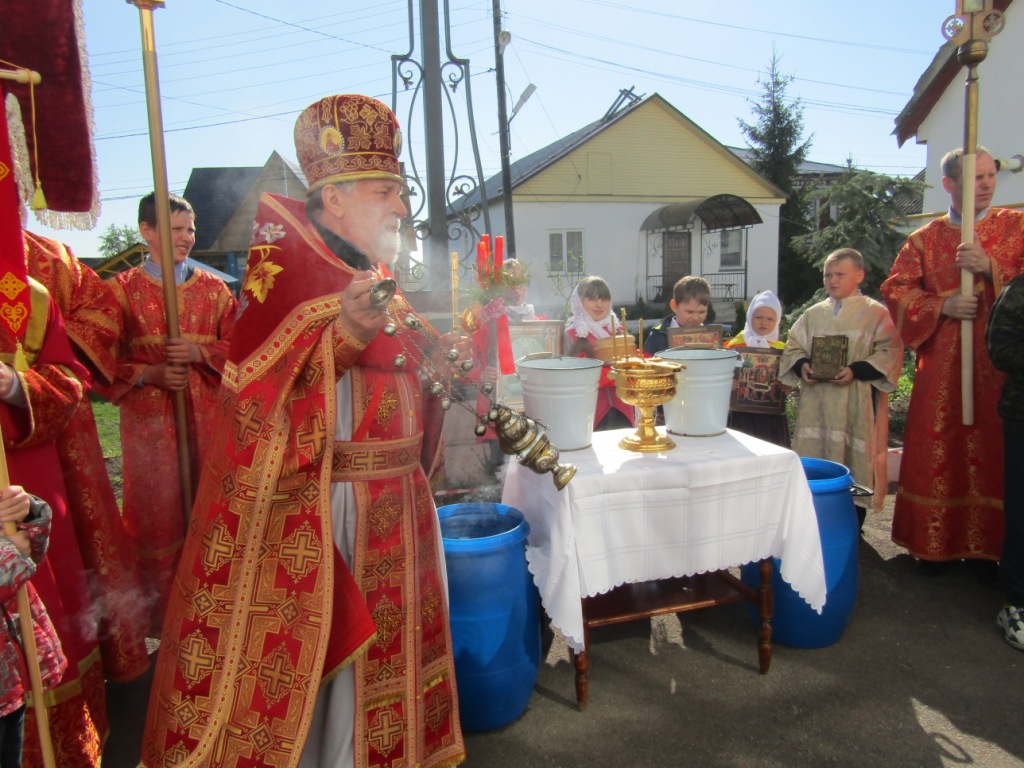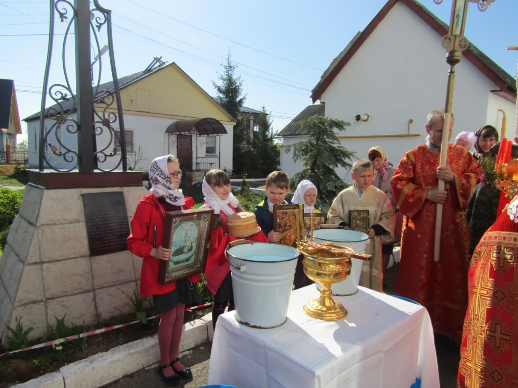 После Литургии был совершен Пасхальный крестный ход вокруг храма и в память о чудесном событии исцеления Богоматерью слепца, в середине V века у источника недалеко от Константинополя, был отслужен молебен и совершено малое освящение воды.