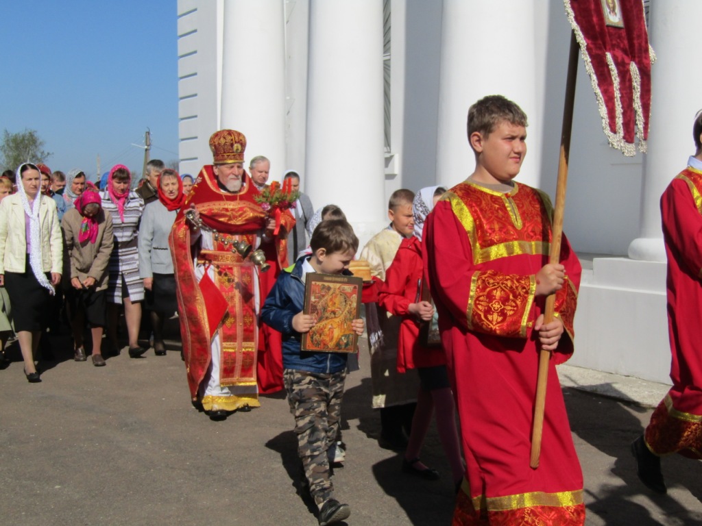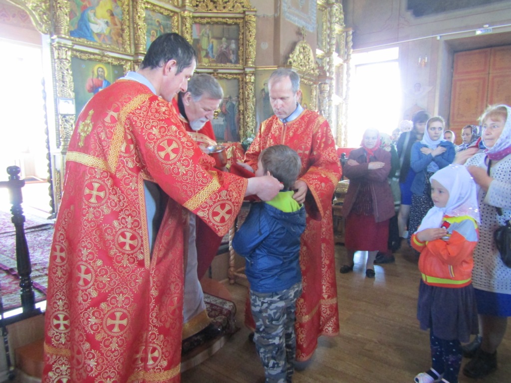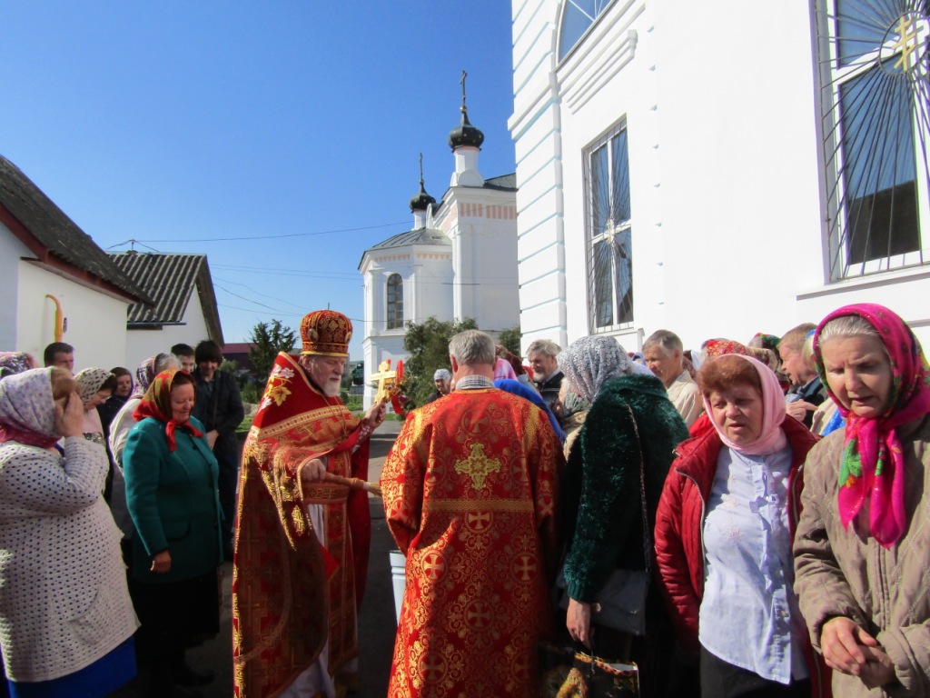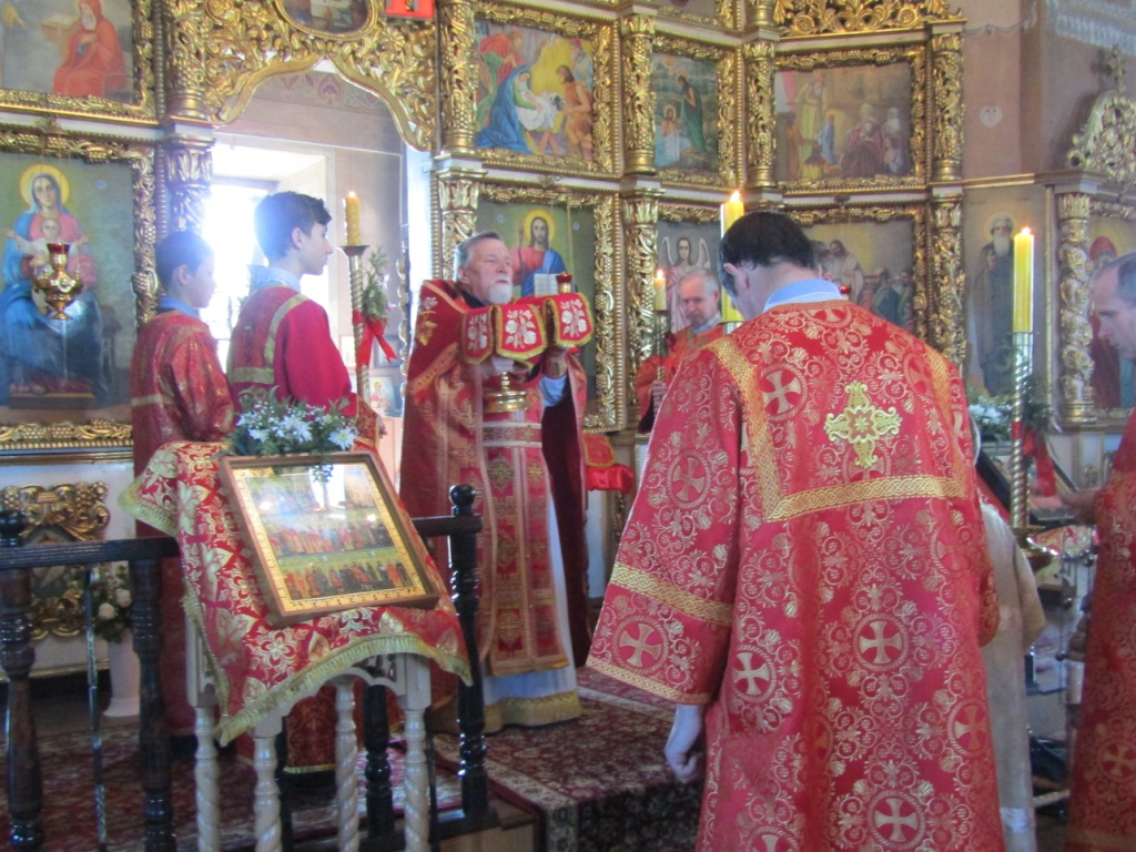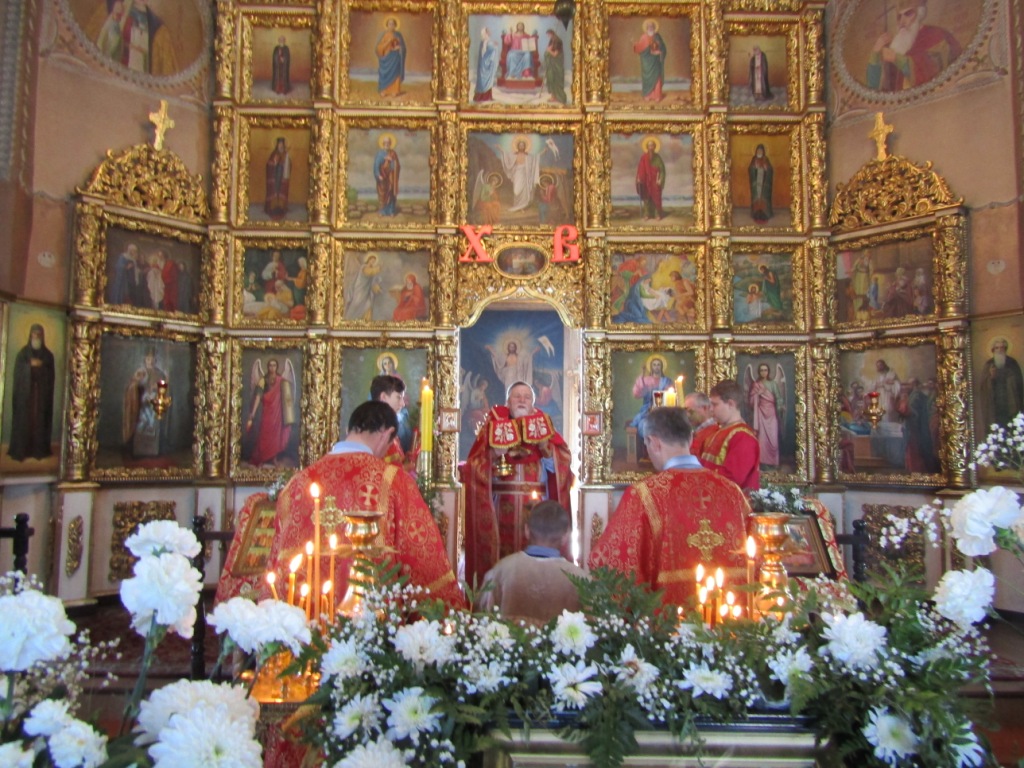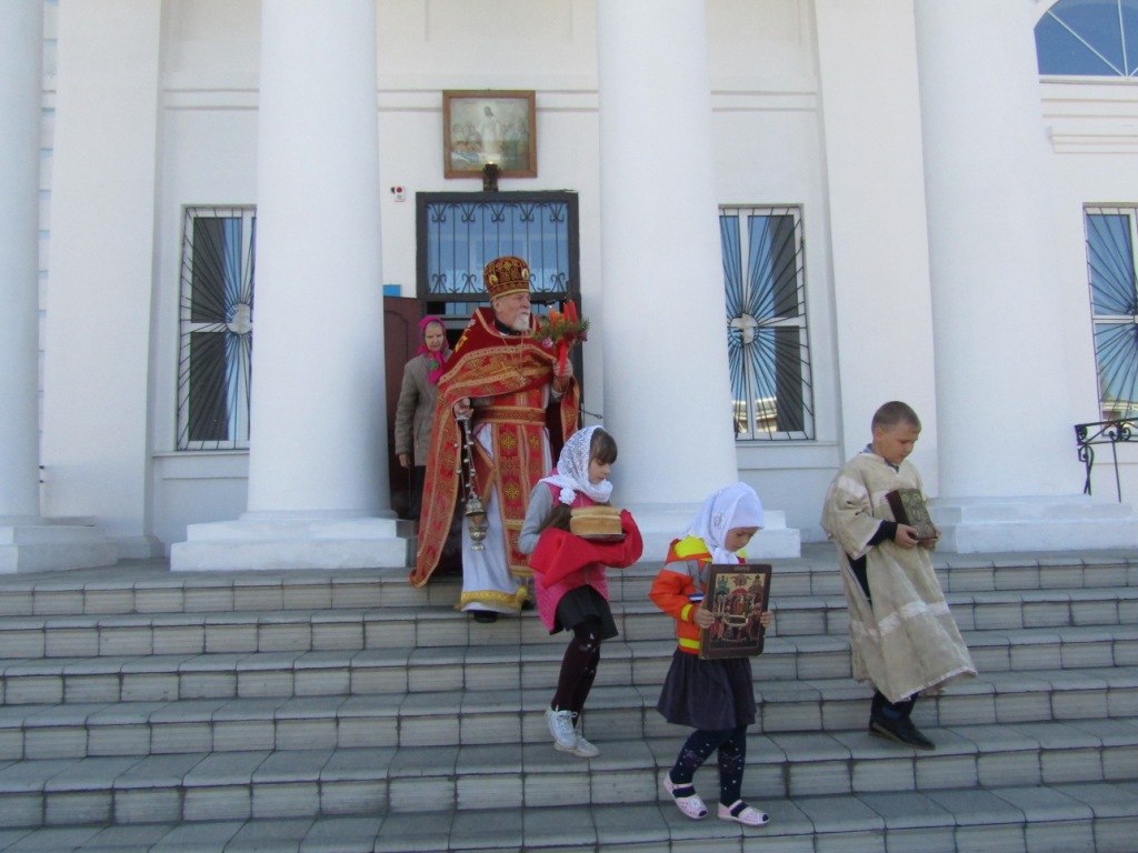 После Литургии был совершен Пасхальный крестный ход вокруг храма и в память о чудесном событии исцеления Богоматерью слепца, в середине V века у источника недалеко от Константинополя, был отслужен молебен и совершено малое освящение воды.