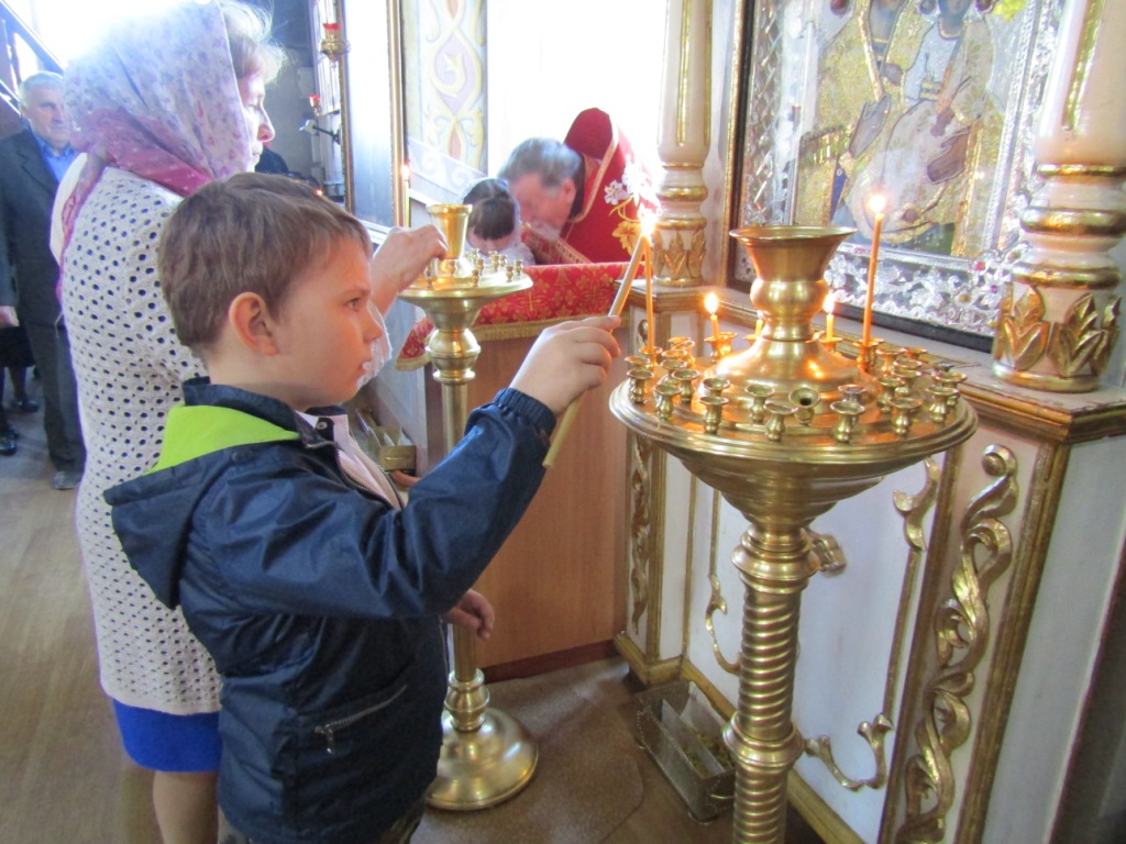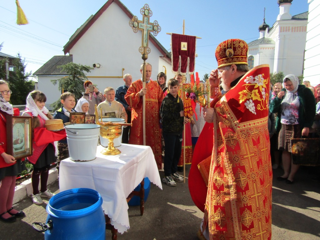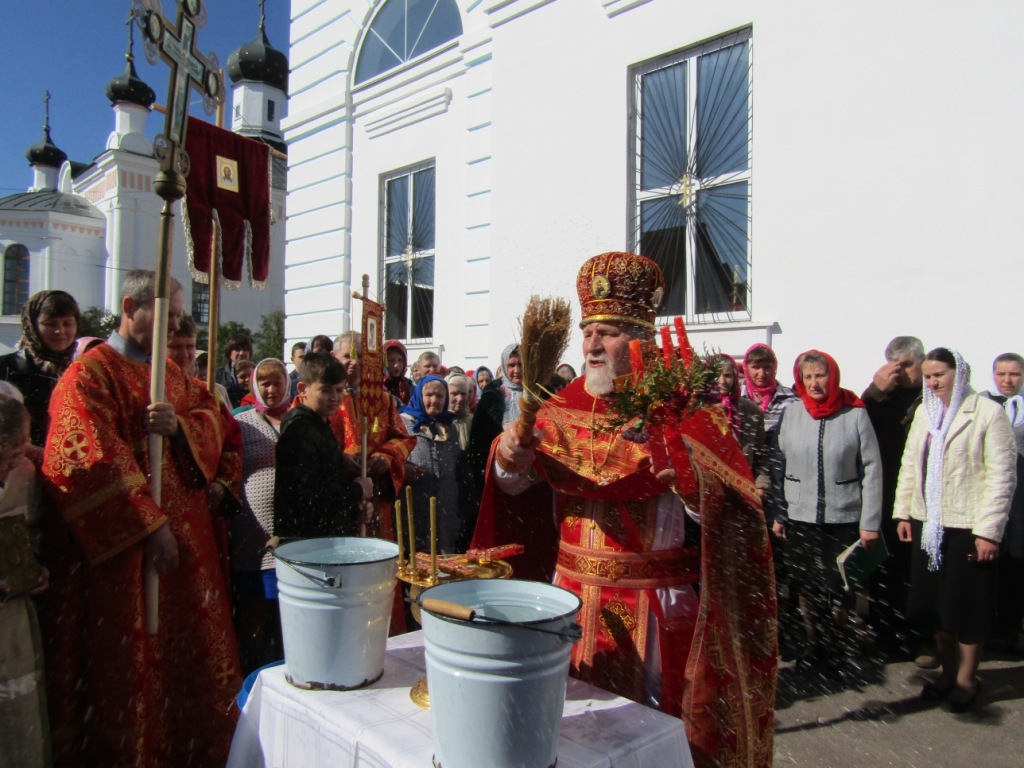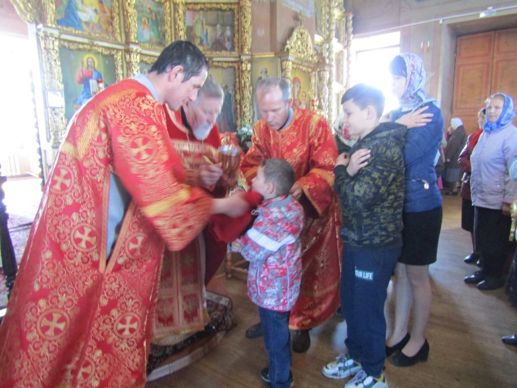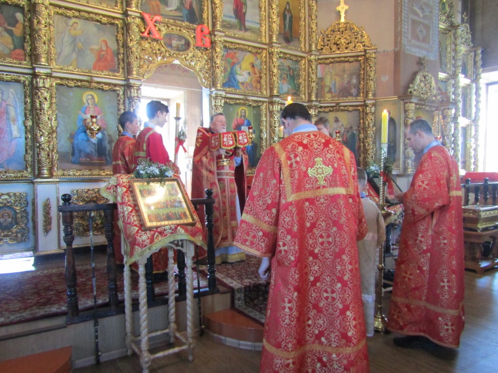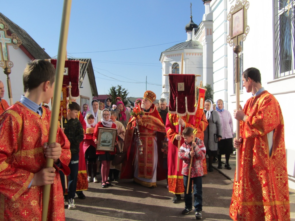 После Литургии был совершен Пасхальный крестный ход вокруг храма и в память о чудесном событии исцеления Богоматерью слепца, в середине V века у источника недалеко от Константинополя, был отслужен молебен и совершено малое освящение воды.
