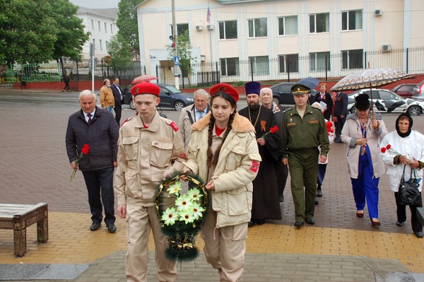 В памятном мероприятии приняли участие глава администрации района В.П.Риваненко, глава района В.П.Зюзько, настоятель храма в честь Благовещения Пресвятой Богородицы г. Суража протоиерей Владимир Фараон, военный комиссар Суражского района Дербуш А.В., юнармейцы, представители учебных заведений, ветеранских и молодежных организаций.