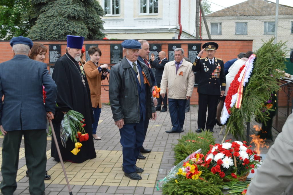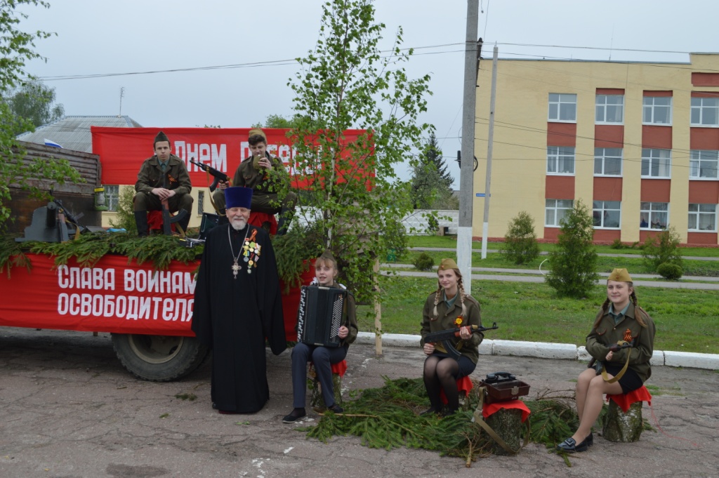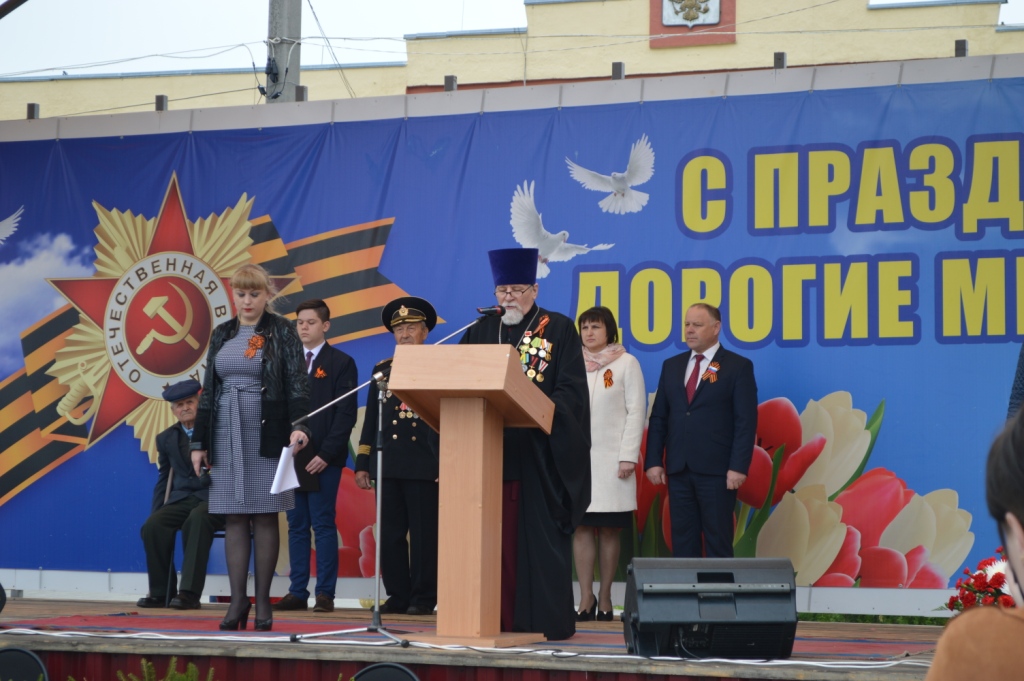 Почетным участником торжественного мероприятия стал благочинный Мглинского церковного округа протоиерей Василий Климчук. В поздравительном слове к участникам митинга протоиерей Василий поприветствовал ветеранов Великой Отечественной войны, тружеников тыла, тех, кто пережил эту войну ребенком, испытав голод, холод, ужас и лишения, призвав молитвенно чтить память наших предков, прошедших горнило войны -тех, кто умер от ран и пропал без вести, тех, кто горел в танках и умирал от голода, тех, кто стирал ноги в кровь, идя дорогами войны в лютую стужу и ледяной дождь… Сугубо обратился священник к молодому поколению, пожелав быть достойными памяти славной воинской доблести дедов и прадедов, быть достойными высокого звания наследников Великой Победы, великого поколения победителей!