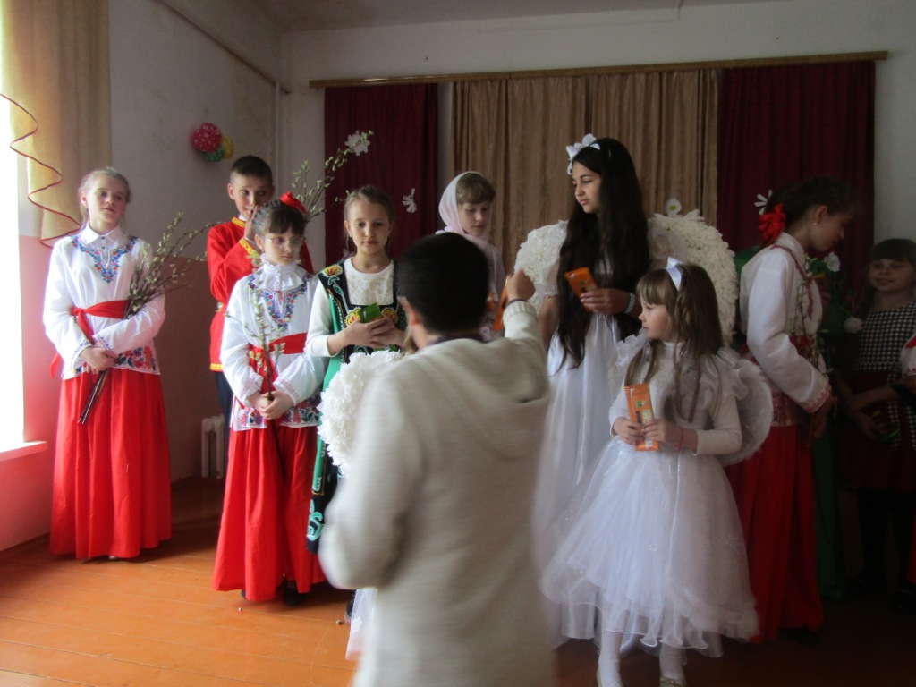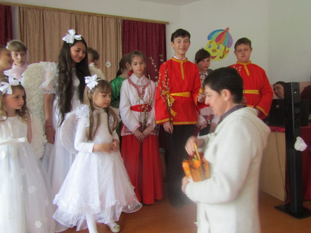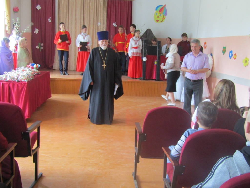 По окончании детского выступления директор школы-интерната Михаил Иванович Ходин обратился к гостям с ответным словом, сердечно поблагодарив протоиерея Василия и воскресную школу за неизменное попечение о детях, оставшихся без попечения родителей и подаренную радость праздника. От школы –интерната воспитанникам воскресной школы были подарены шоколадки.