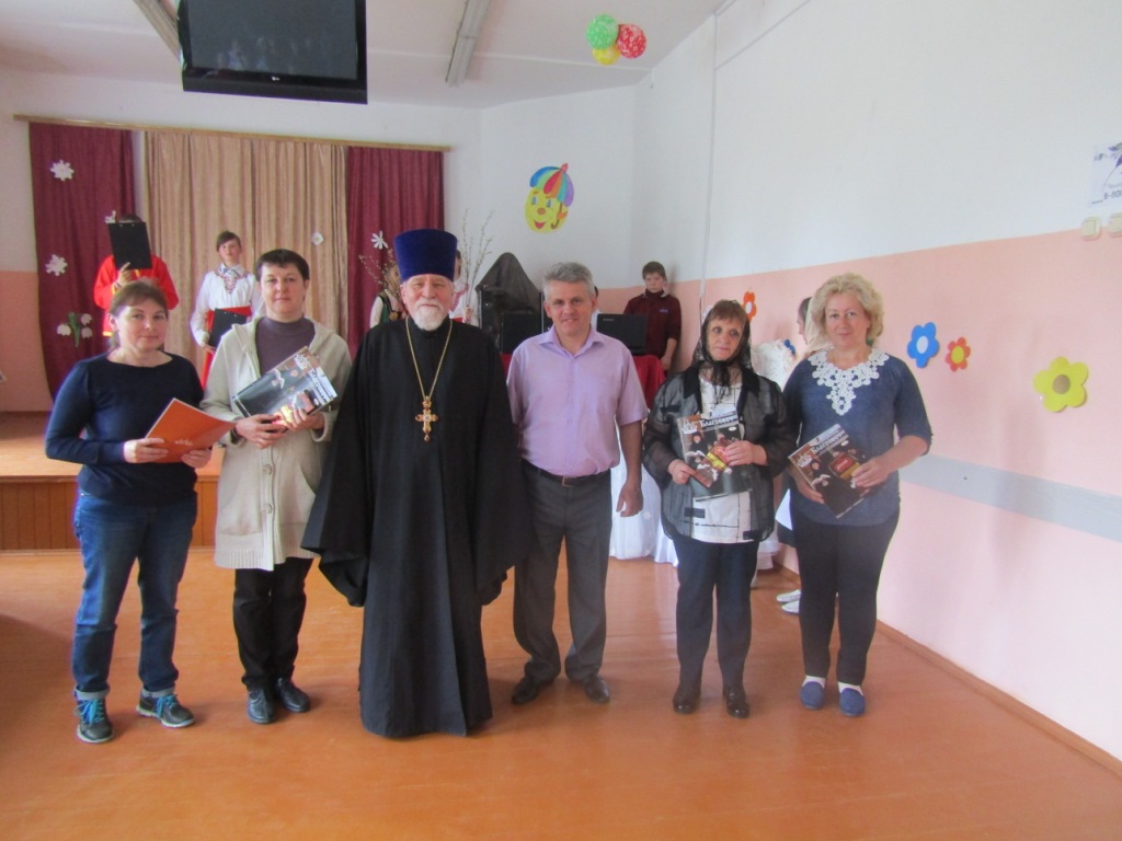 Сугубые слова поздравлений протоиерей Василий адресовал женщинам – труженицам интерната, несущим труды по воспитанию вверенных их попечению детей. Отметив их подвижническое служение, заботу и любовь, которыми наставницы одаривают своих подопечных, со словами пожеланий помощи Божией и заступничества святых Жен-мироносиц, священнослужитель преподнес воспитателям подарки: журналы «Клинцовский благовест» и шоколад.