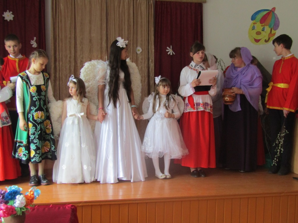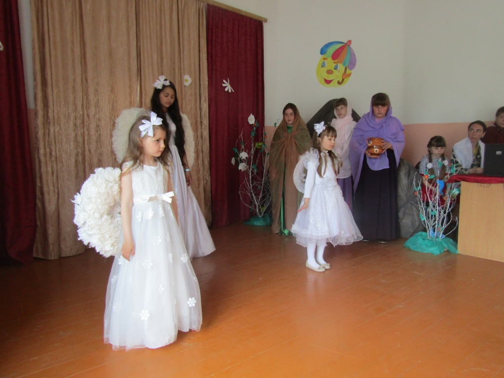 Далее слово было передано воскресной школе. Ребята в своем ярком представлении поздравили всех с праздником святых Жен-мироносиц, посредством инсценировки помогли услышать всем присутствующим слово Евангелия и Любви, взрастить в своем сердце росток веры и проникнуться светом Великого праздника – Святой Пасхи Христовой.