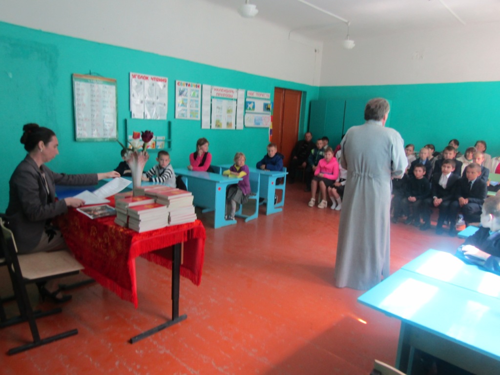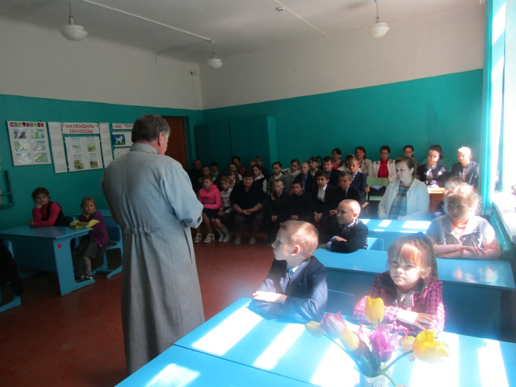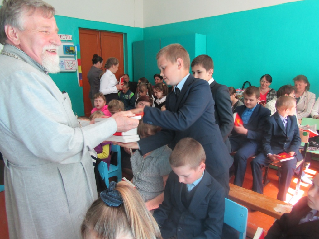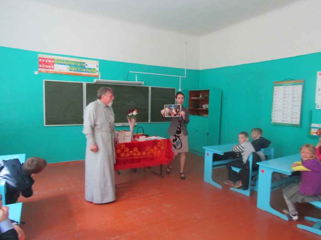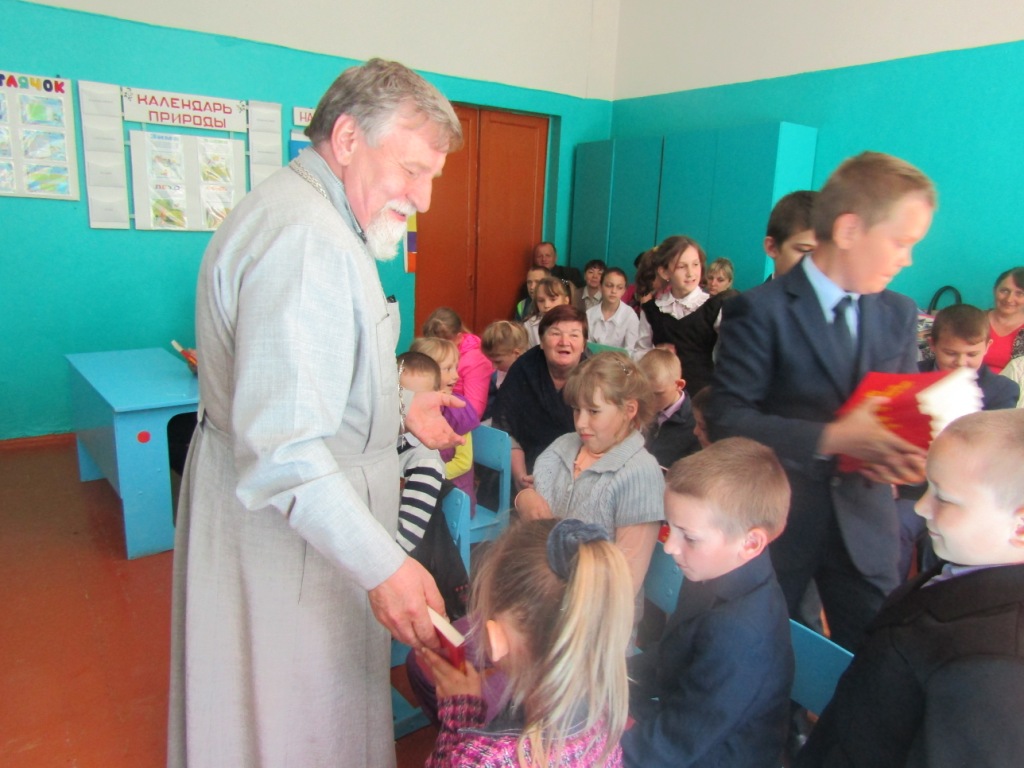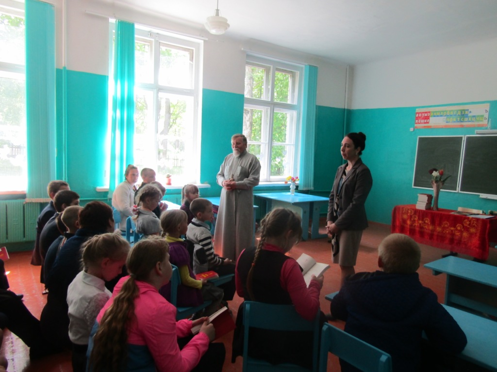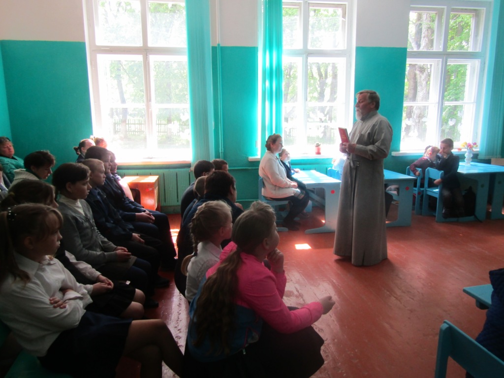 14 мая, в Неделю святых Жен-мироносиц благочинный Мглинского церковного округа протоиерей Василий Климчук в сопровождении помощника благочинного по работе с молодежью Светланы Александровны Рыжаковой совершили пасхальный визит в основную общеобразовательную школу в селе Высокое Мглинского района. В общешкольном мероприятии приняли участие учащиеся и преподаватели во главе с директором В.Я.Клюевым.