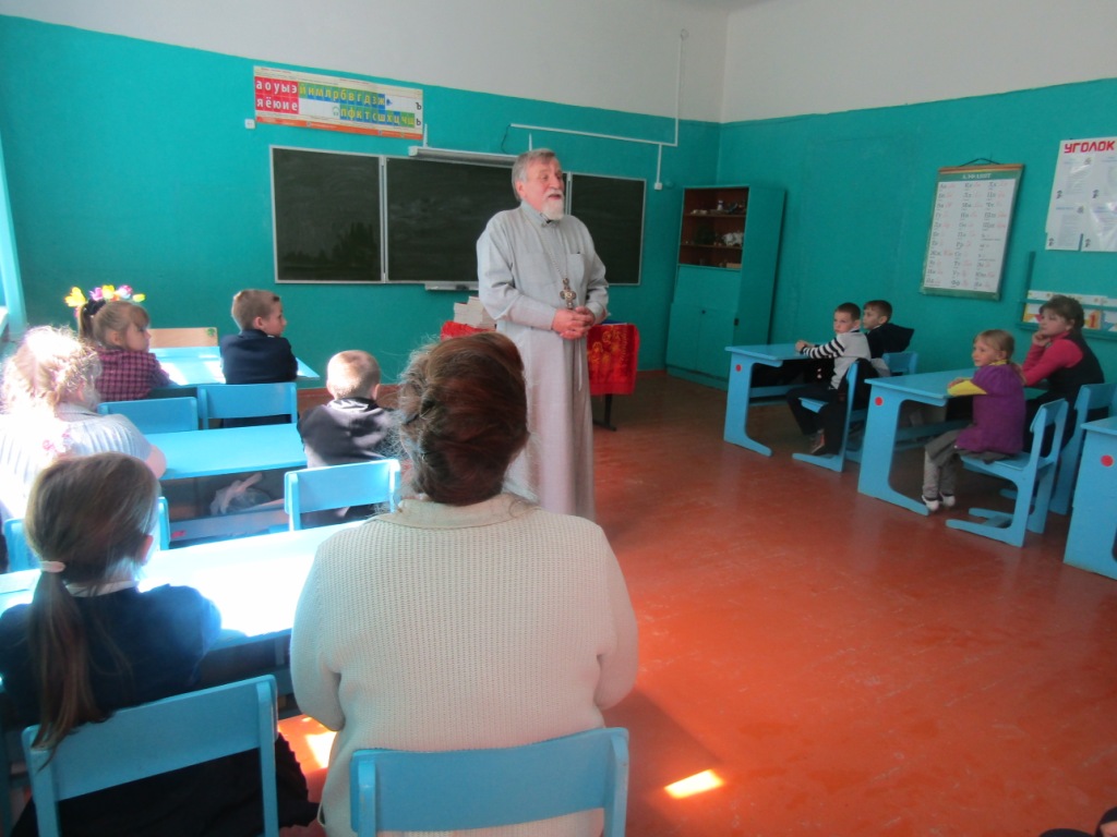 В завершении встречи отец Василий рассказал участникам беседы о Святом Евангелии- главной книге человечества, подчеркнув, что именно в ней содержатся Божественные истины, ведущие ко спасению. Всем детям и их наставникам батюшка преподнес в дар Святое Евангелие.